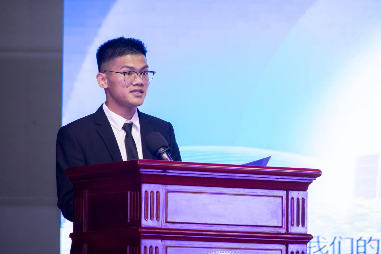 毕业生代表安德烈上台发言,分享了在学校3年学习生活的难忘时刻以及一路收获的成长,表达了对母校的感恩之情和对中国的热爱。