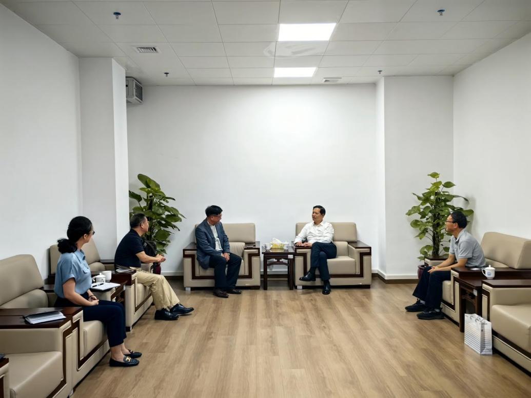 会前,尹协麒在对外交流合作处陪同下参观了我校实训室。会上,何汉武及徐勇军对尹协麒来访我院表示热烈欢迎并简要介绍了学校基本情况,希望两所院校能够保持友好交流,通过师生交流互动,增进两岸情谊。何汉武关心学生就业实践,就台湾毕业生如何在大陆地区开展实习实践进行深入了解,并期待邀请台湾高端人才来校进行短期访问。徐勇军围绕学分互换探讨院校间的合作形式,表示后续如有合适时机将推进该项目。