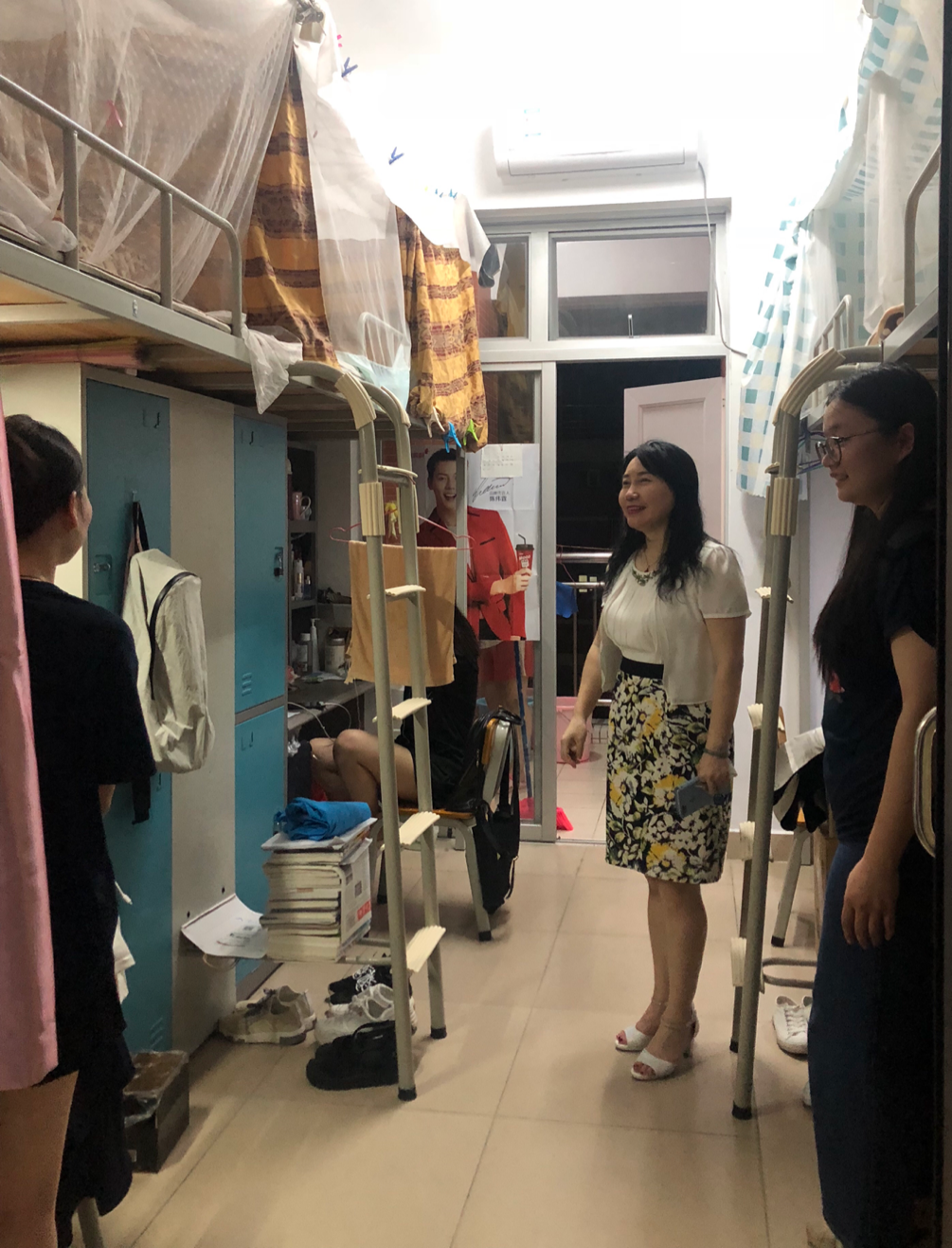在走访学生宿舍过程中,王艳芬着重了解了学生在班级、社团、宿舍的基本情况,还关心询问大家在生活、学习、课外活动、职业规划等方面碰到的困难,并结合她的生活工作经历给大家提出了一些建设性意见。特别是,在走访子新书院4号楼828宿舍时,她和该宿舍的同学交谈日常宿舍生活趣事,鼓励同学们要认真学习,合理作息,共同为班集体营造良好的学习氛围,促进良好学风班风的形成作出努力。