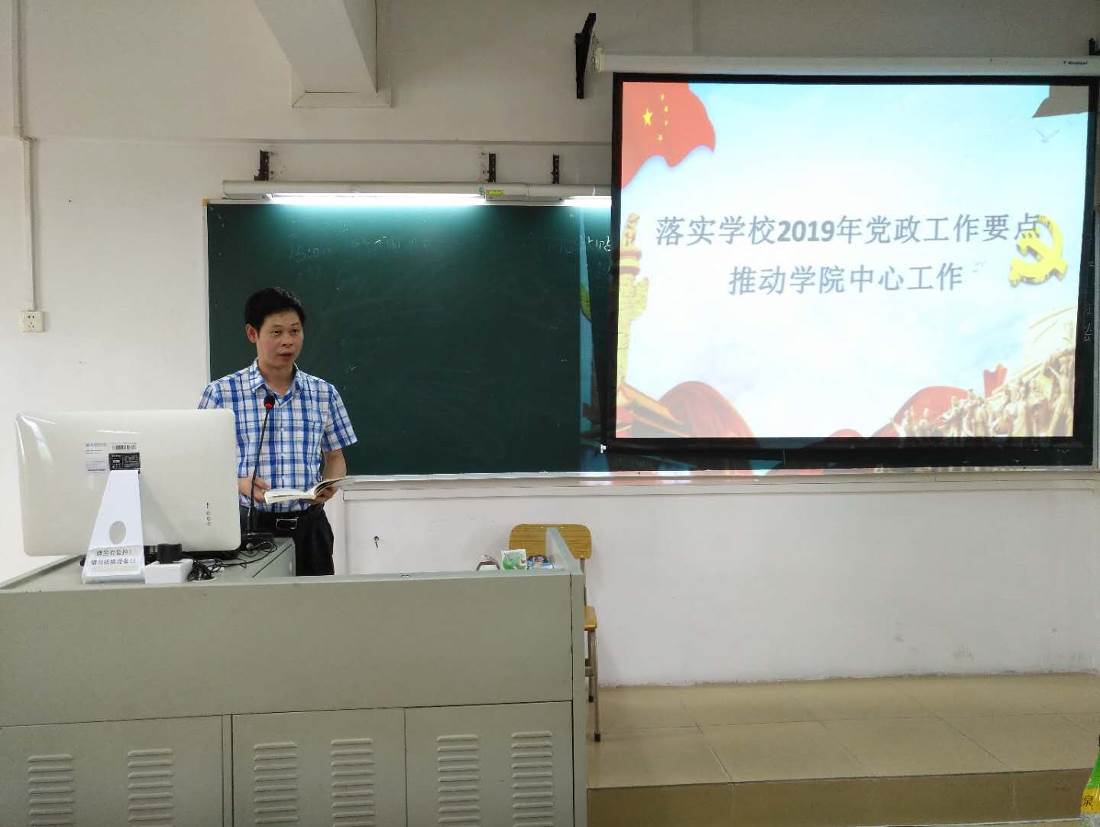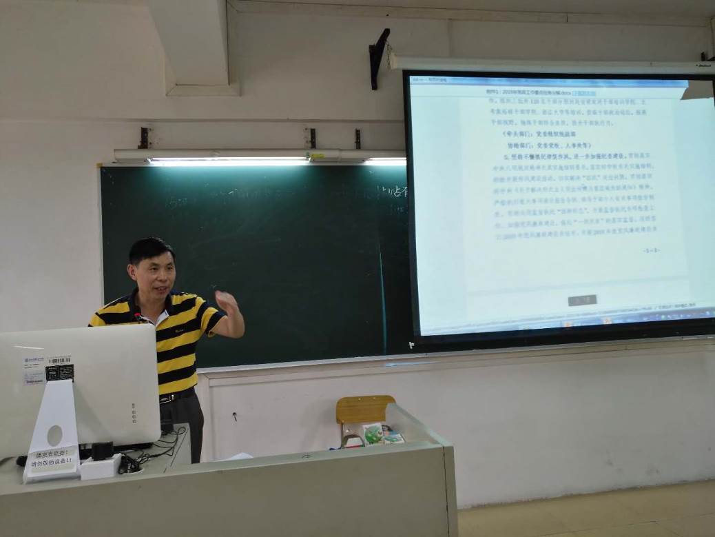 为进一步加强党政工作效果,提升学院各项工作效率,汽车工程学院于2019年6月18日下午在天河校区综合楼401召开政治学习会议。会议由彭卫东书记主持,全体教师参会。 会上,彭卫东书记解读了2019年党政工作要点工作,强调要学懂弄通做实习近平新时代中国特色社会主义思想和视察广东重要讲话精神,落实立德树人的根本任务,加强师生思想政治工作,提升党总支的战斗力;要树牢“四个意识”,坚定“四个自信”,坚决做到“两个维护”,提出强力推进创新强校工程和一流院校建设,组织好优质校和“特高”校的申报工作,推进混合式教改,加大人才培养模式的创新改革力度,加强专业和专业群建设,打造一批高水平专业和特色专业。