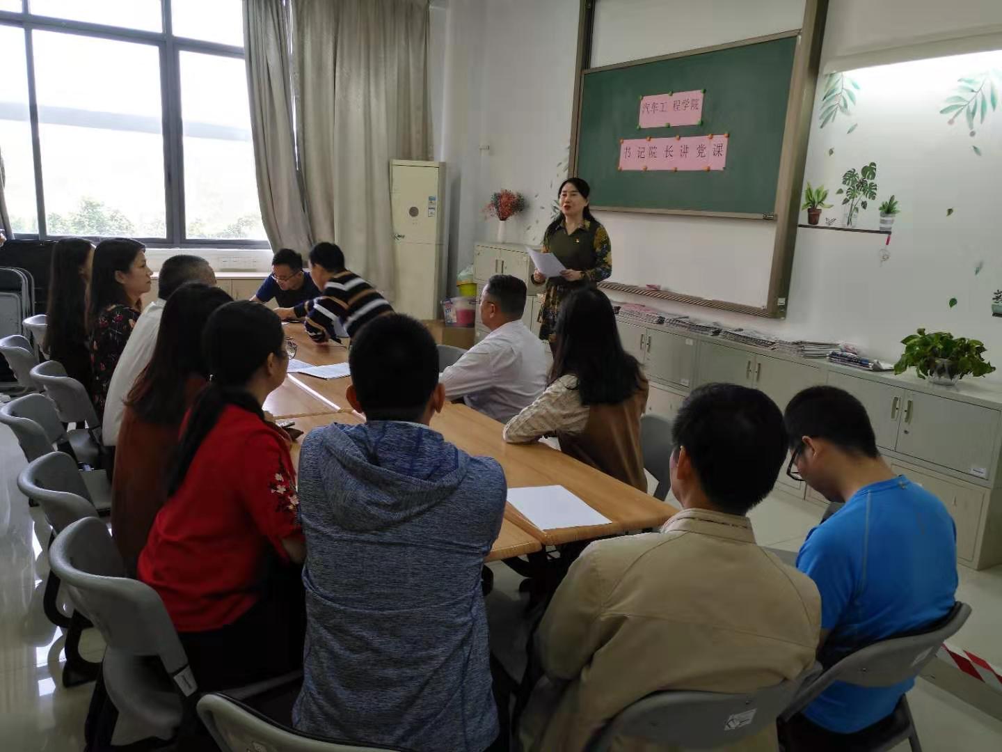 11月18日,汽车工程学院党总支在白云校区明德楼一区219开展书记党课活动,党课由汽车工程学院党总支书记彭卫东和院长王艳芬主讲,汽车工程学院全体教工党员参加活动。