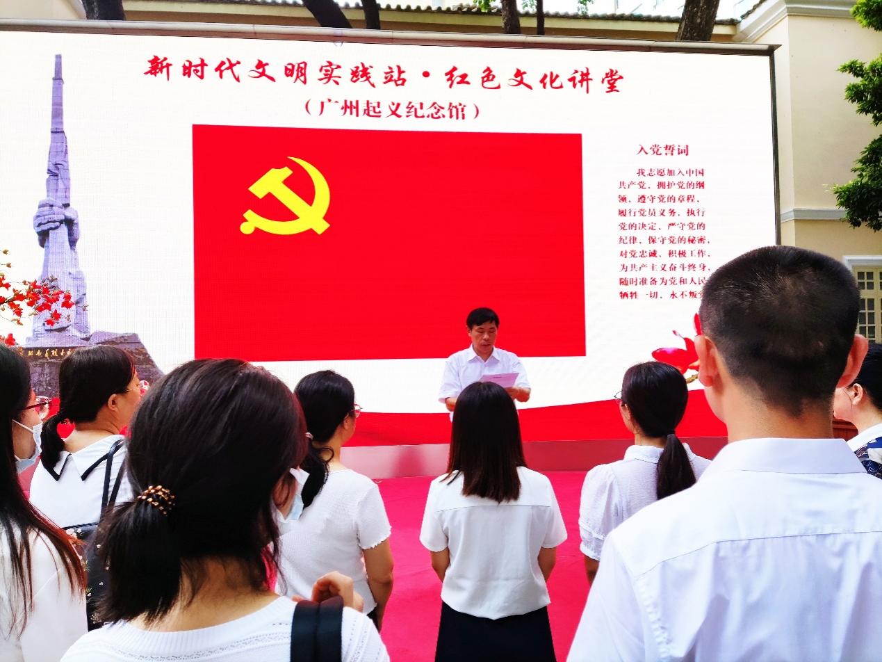 党总支书记彭卫东在纪念馆现场对党员们说,今天我们一起来到广州起义纪念馆参观学习,为的就是学习党在革命时期的历史;广州是大革命的策源地,工农运动曾有很大发展。广州起义是对国民党反动派叛变革命和实行白色恐怖的一次英勇反击,是在城市建立苏维埃政权的大胆尝试,在国内外都引起了很大的震动;这次起义虽然失败了,但起义军民英勇顽强、不怕牺牲的革命精神,给了中国人民以新的鼓舞。