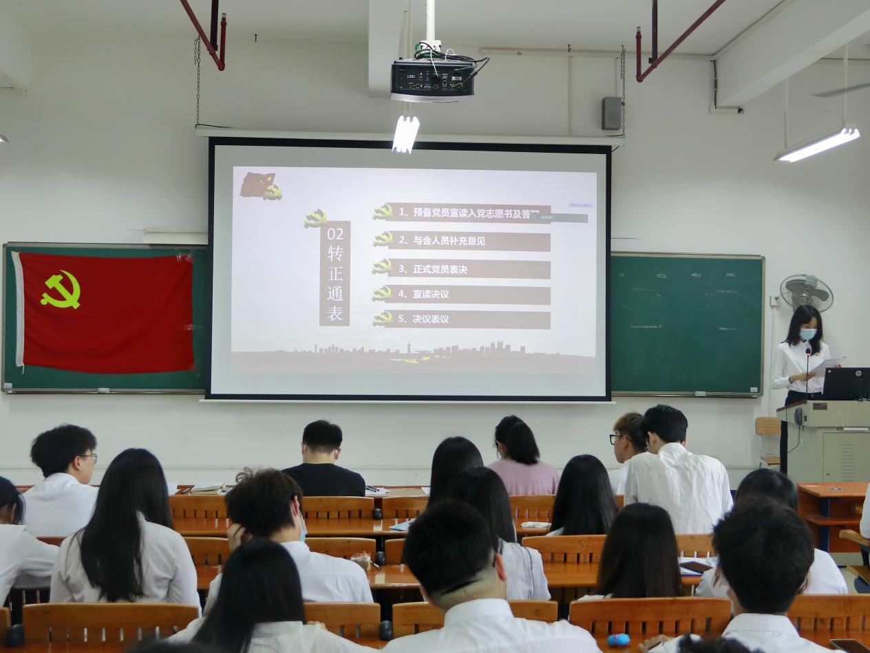 紧接着,会议进入最后一项议程。在场有投票表决的正式党员对申请转正的预备党员逐一进行讨论并进行无记名投票表决,并由桂晶晶同志宣读预备党员转正的决议,一致同意杜冰淼等27名预备党员如期转为中共正式党员。