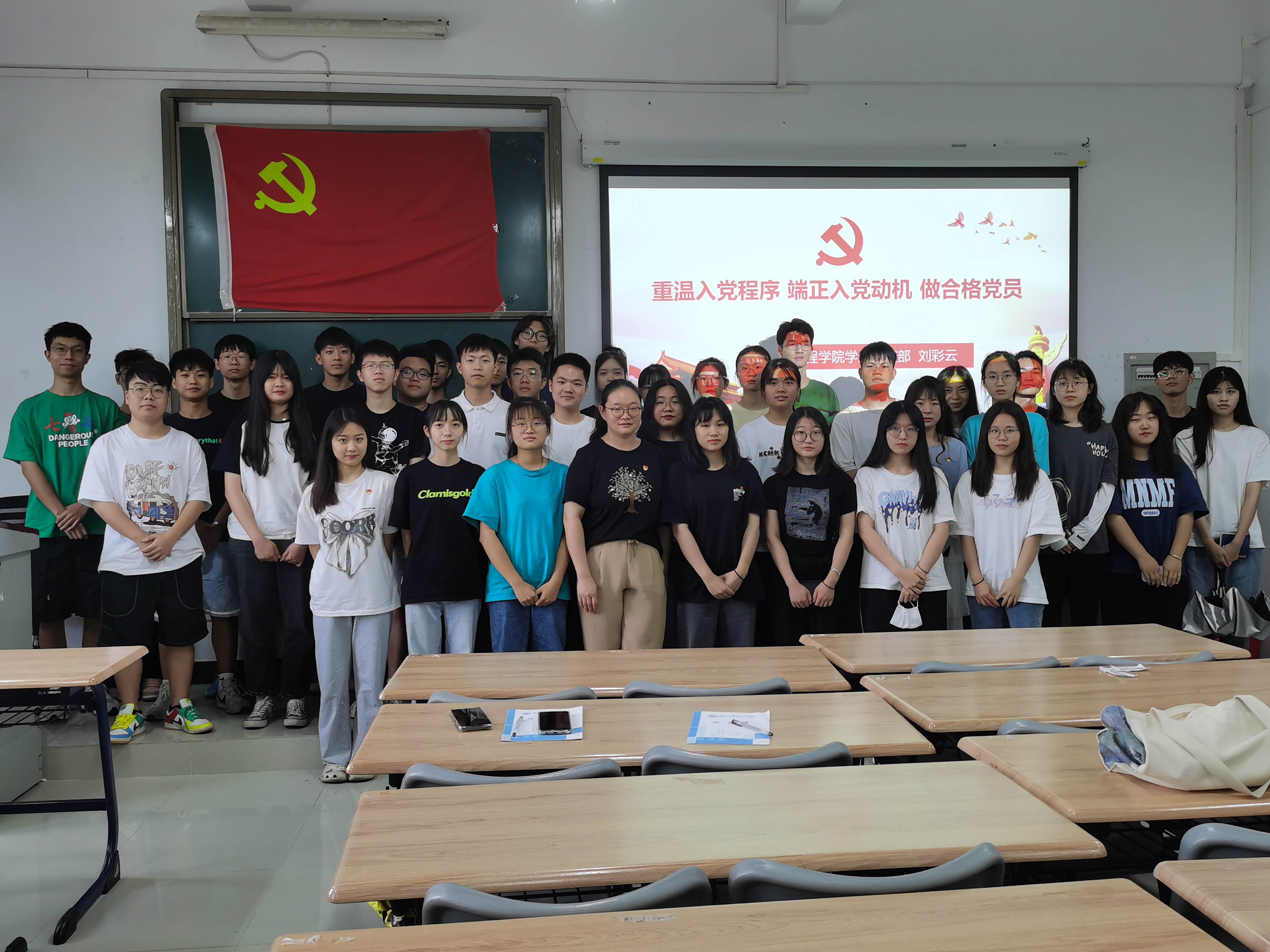 党课现场 首先,刘彩云带领大家一起重温了入党的基本程序和相关的注意事项,让大家对入程序有了进一步的了解和认识;紧接着,她从端正入党动机等方面对同志们进行党性教育,从先辈党员的事迹中汲取优秀的党员品质,不忘初心、牢记使命,希望大家以党员的标准严格要求自己,鞭策自己,在同学和群众中做到榜样示范作用和模范带头作用。