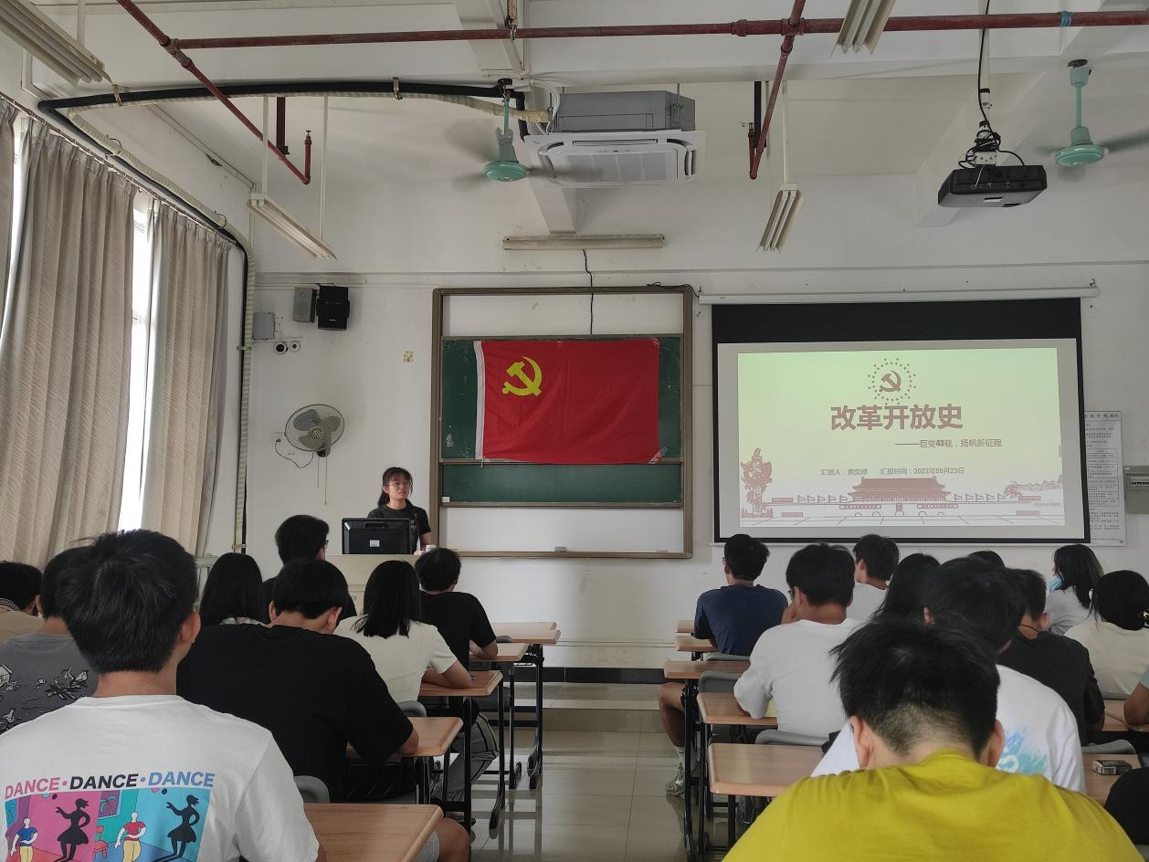 为深入开展党史学习教育,加强青年学生思想政治引领,推动党史学习教育走深走实,以学习迎接党的二十大胜利召开,9月23日上午10点半,15vip太阳集团“学生党史宣讲团”成员黄奕婷在明德楼1区312给21新能源4班宣讲改革开放史。