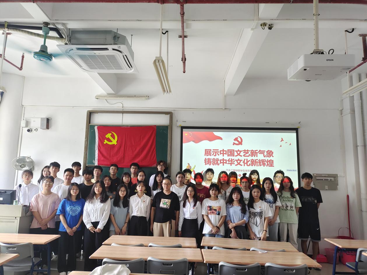 为迎接党的二十大胜利召开,进一步提高支部学生党员的思想政治觉悟,加强党性修养,坚定共产主义理想信念,9月29日下午14点,汽车工程学院学生党支部在明德楼1区507开展党史学习微课堂之“展示中国文艺新气象,铸就中华文化新辉煌”主题学习会。此次学习会由支部党员黄奕婷主持。支部书记刘彩云和全体在校学生党员参加了此次学习。