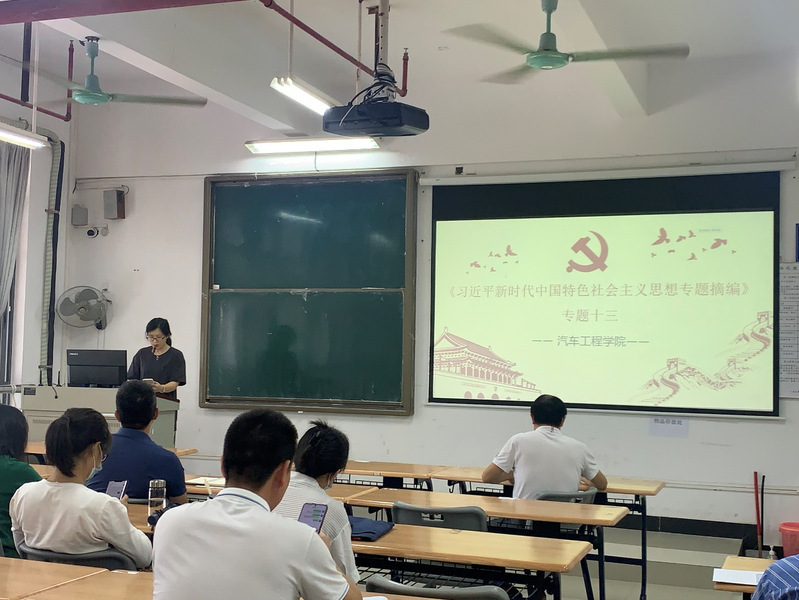 会议现场 会上,彭卫东带领全体教师学习了习近平总书记在中国共产党第二十次全国代表大会上的报告,号召全体人员自觉学习贯彻习近平新时代中国特色社会主义思想,学习贯彻习近平总书记关于教育的重要论述,提升政治觉悟和理论水平。 党总支组织委员侯益坤带领全体成员学习了《习近平新时代中国特色社会主义思想专题摘编》专题十三的有关专题内容,并结合日常工作实际情况分享学习心得。接着,读书班成员刘文苹、赵晓敏、梁志勇分别就“国家安全”的主题,联系思想和工作实际畅谈学习体会。 (汽车工程学院 文/陈锐钊 图/陈晓琳 编辑/陈锐钊 审核:彭卫东)