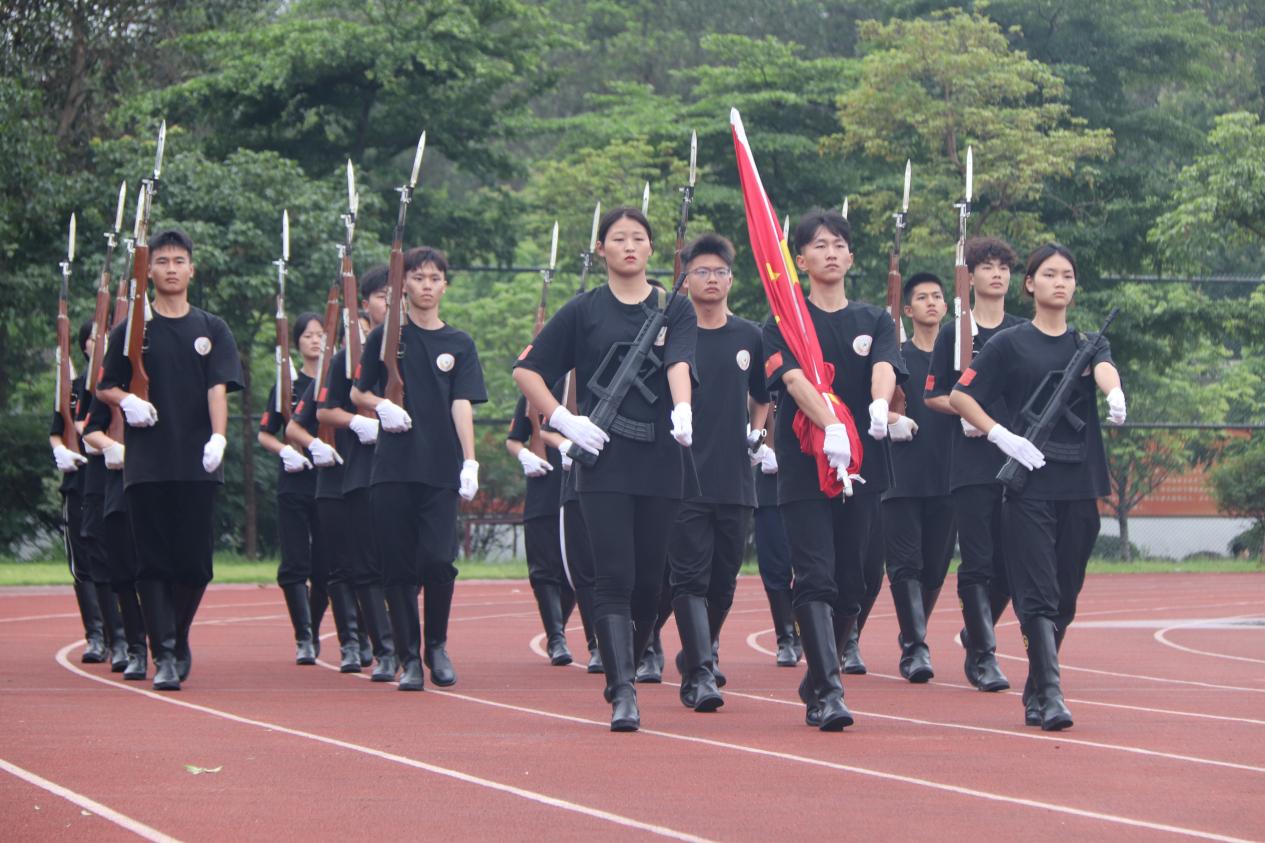 仪式伊始,国旗护卫队气宇轩昂,他们擎着红旗踏着整齐划一、铿锵有力的步伐,向升旗台走去嘹亮的国歌声响起,师生们整齐划一地行注目礼,目光炯炯、全神贯注。伴随着雄壮的《义勇军进行曲》,五星红旗徐徐升起,师生们齐唱国歌,表达对祖国深挚的爱。
