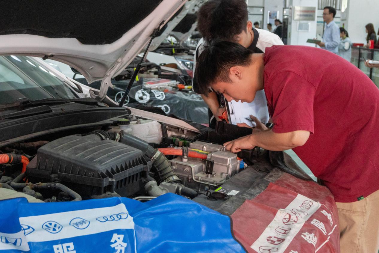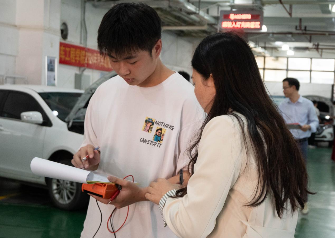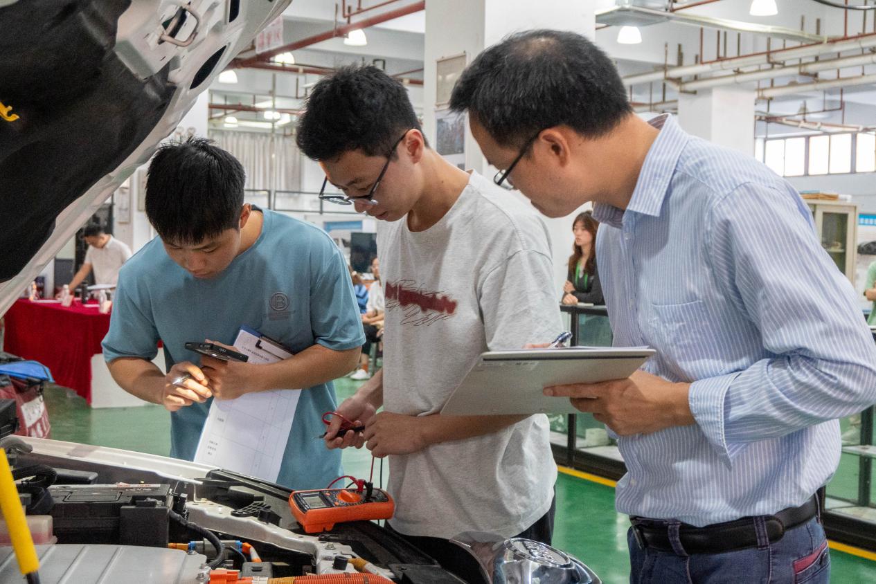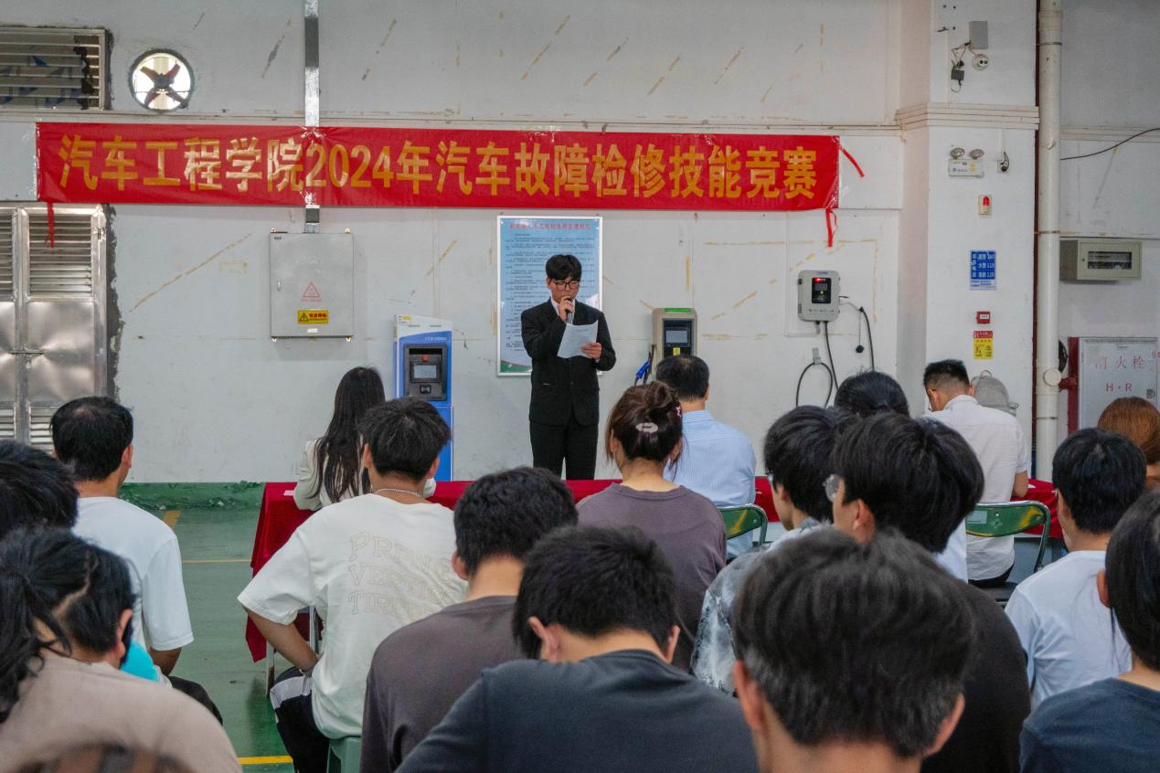 为紧跟国家新能源汽车发展战略,服务汽车产业领域人才培养的需求,培养更多高素质技术技能人才,提高学生学习技能的兴趣,锻炼动手能力和创造能力,2024年11月13日,由汽车工程学院党总支主办,汽车工程学院新能源汽车系承办,汽车工程学院团总支、汽车工程学院学生会、15vip太阳集团汽车协会协办的2024年汽车故障检修技能竞赛决赛在行知楼101教室举行。本次比赛由王锋主任、黄美红老师、钟玉灵老师担任评委,比赛由毛炳哲主持。