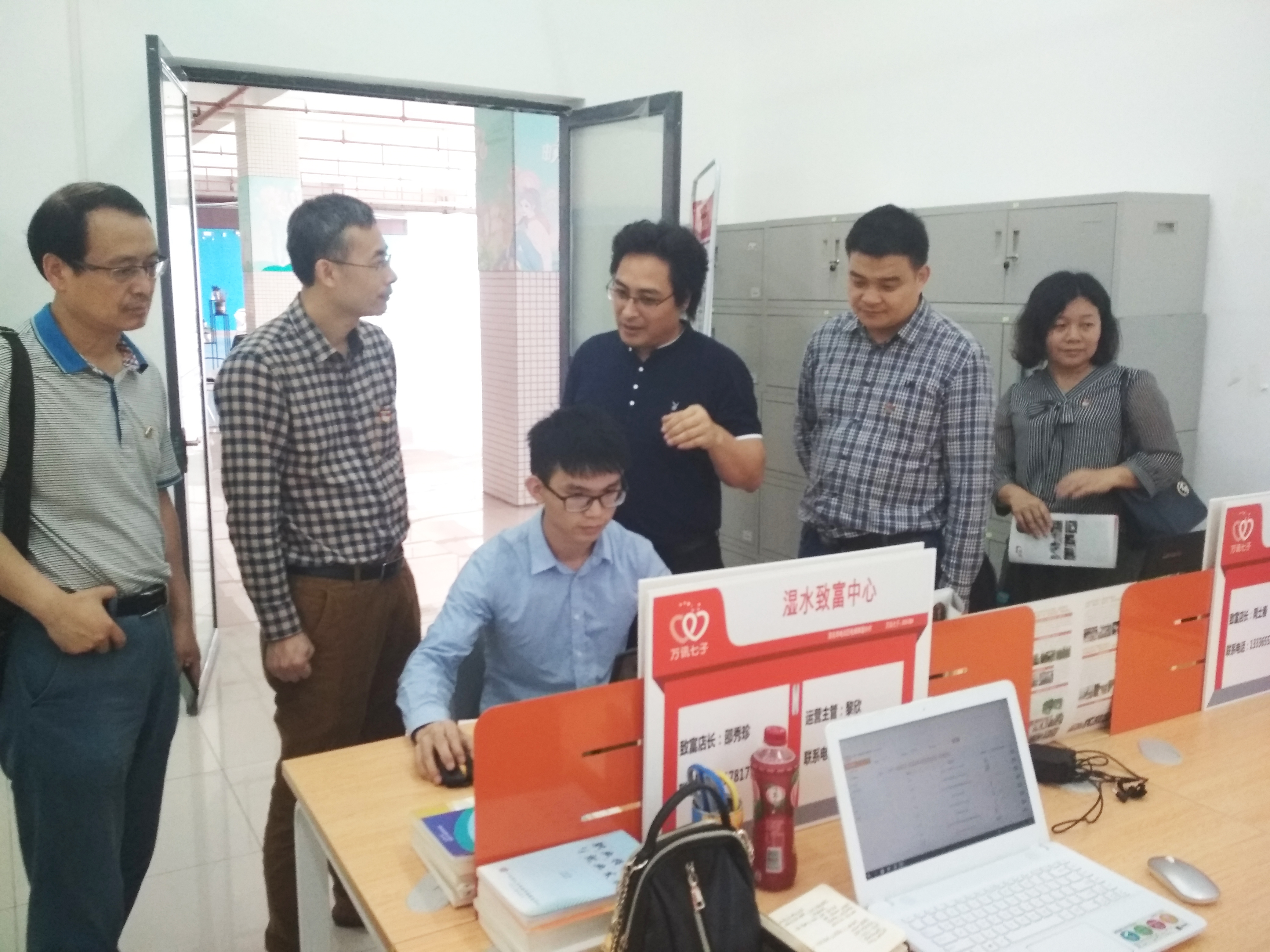 王坤明带领李副校长一行首先参观了广东工贸∙万讯创客城和农村电商运营基地,并听取了农村电商扶贫项目负责人对项目的运营模式以及目前项目在茂名市化州市、滨海新区等区域复制推广情况的工作汇报。