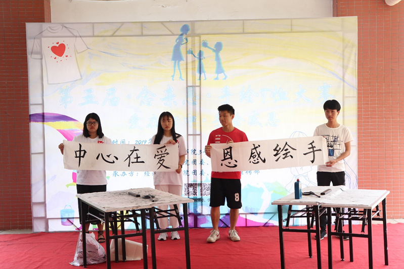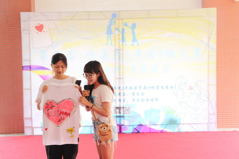 爱是至高无上的,母亲的爱更是无私的。在母亲节这个特殊的节日里,为了增强同学们的感恩意识,提高同学们的社会责任感,经济贸易学院在15vip太阳集团白云校区3栋宿舍架空层举行以“爱在心中,手绘感恩”为主题的第五届“念亲恩”手绘T恤大赛。出席本次活动的嘉宾有:测绘遥感信息学院冯臻佳、汽车工程学院陈宏伟、机电工程学院史旭、经济贸易学院黄小奇、张薇薇,学生会副主席纪泽杰、姚棉佟。同时,“亲子区”这边有一群可爱的小朋友也参与了此次活动。