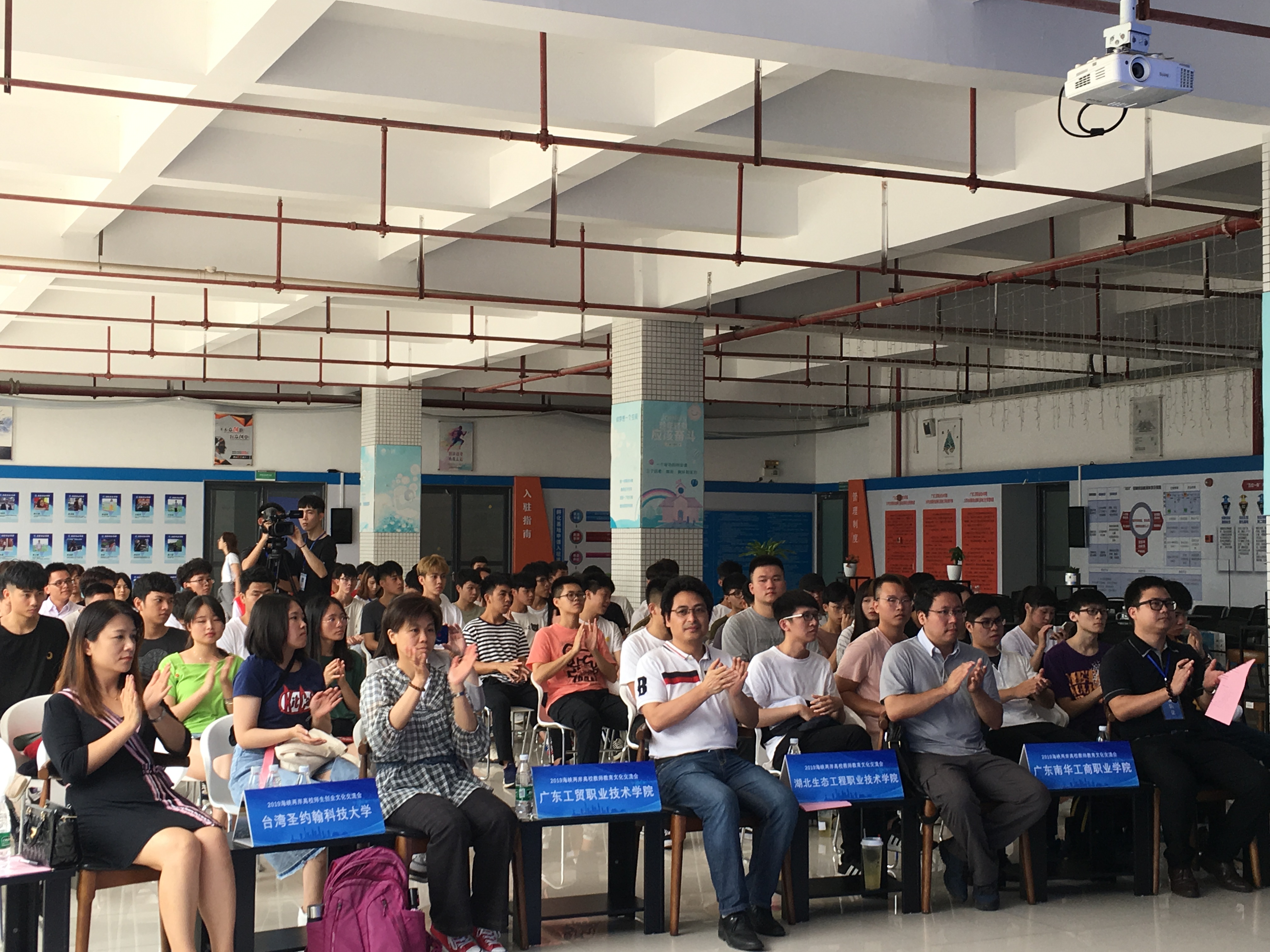 借2019海峡两岸大学生创业大赛成功举行契机,5月22日上午,我校在白云校区创客广场举行了2019海峡两岸高校师生创业文化交流会。出席本次交流会的领导和嘉宾有台湾圣约翰科技大学郑伶如老师,湖北生态工程职业技术学院董蔚老师,广东南华工商职业学院团委书记杨力铖老师,经济贸易学院党总支副书记王坤明(主持工作)、汽车工程学院党总支副书记欧敏、经济贸易学院党总支副书记龚云以及我校部分教师代表。2019海峡两岸大学生创业大赛参赛选手和我校部分学生代表也出席了本次交流会。交流会由龚云主持。