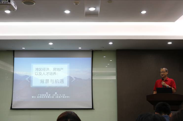 接下来,易居克而瑞广州机构高级分析师肖文晓作了“粤港澳大湾区城市房地产投资价值分析”的学术报告,来自广东财经大学的张鹏教授作了题为“湾区经济、房地产以及人才培养:背景与机遇”的专题讲座。
