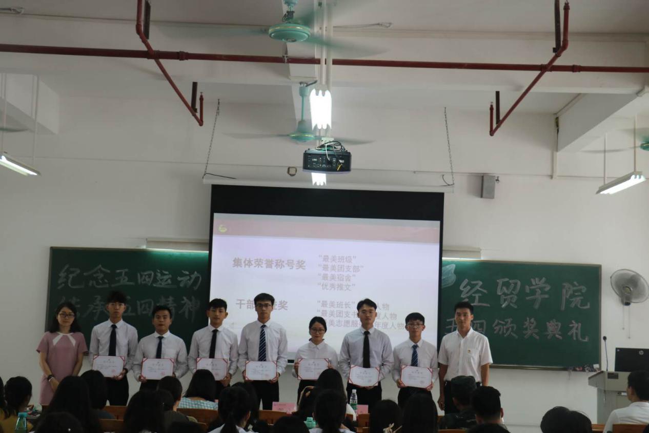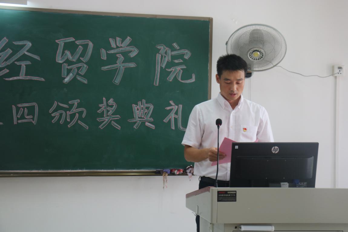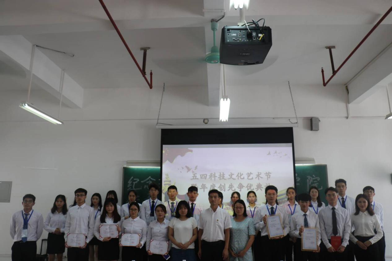 为纪念 五四运动100周年,弘扬爱国、进步、民主、科学的五四精神,加强学生的思想道德建设,提高学生综合素质,通过对在五四科技文化艺术节中表现突出的集体以及个人进行表彰,引导青年团员了解民族文化发展历程和提升文学修养,进一步增强民族自尊心,自信心和自豪感。经济贸易学院在6月27日下午2点在2区203举办了五四科技文化艺术节暨年度创先争优颁奖仪式。莅临本次五四颁奖典礼的领导以及老师有:经济贸易学院党总支副书记龚云,学工办主任黄小奇,学工办张薇薇、曾竞。