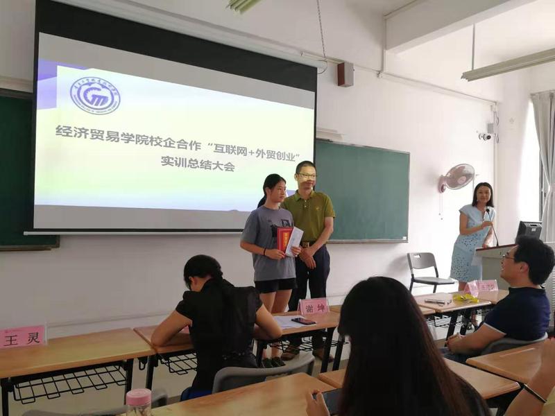 2019年7月3日,经济贸易学院举行了国际贸易专业校企合作“互联网+外贸创业”实训总结大会。莅临现场的领导和老师有:经贸学院党总支副书记王坤明、经贸学院院长邱秀芳、经贸学院副院长方洁,国贸专业专任教师刘佳珺、王玮君。参加本次总结大会的企业代表有:东莞市共享能源科技有限公司总经理谢坤、东莞市共享能源科技有限公司外贸经理王灵。