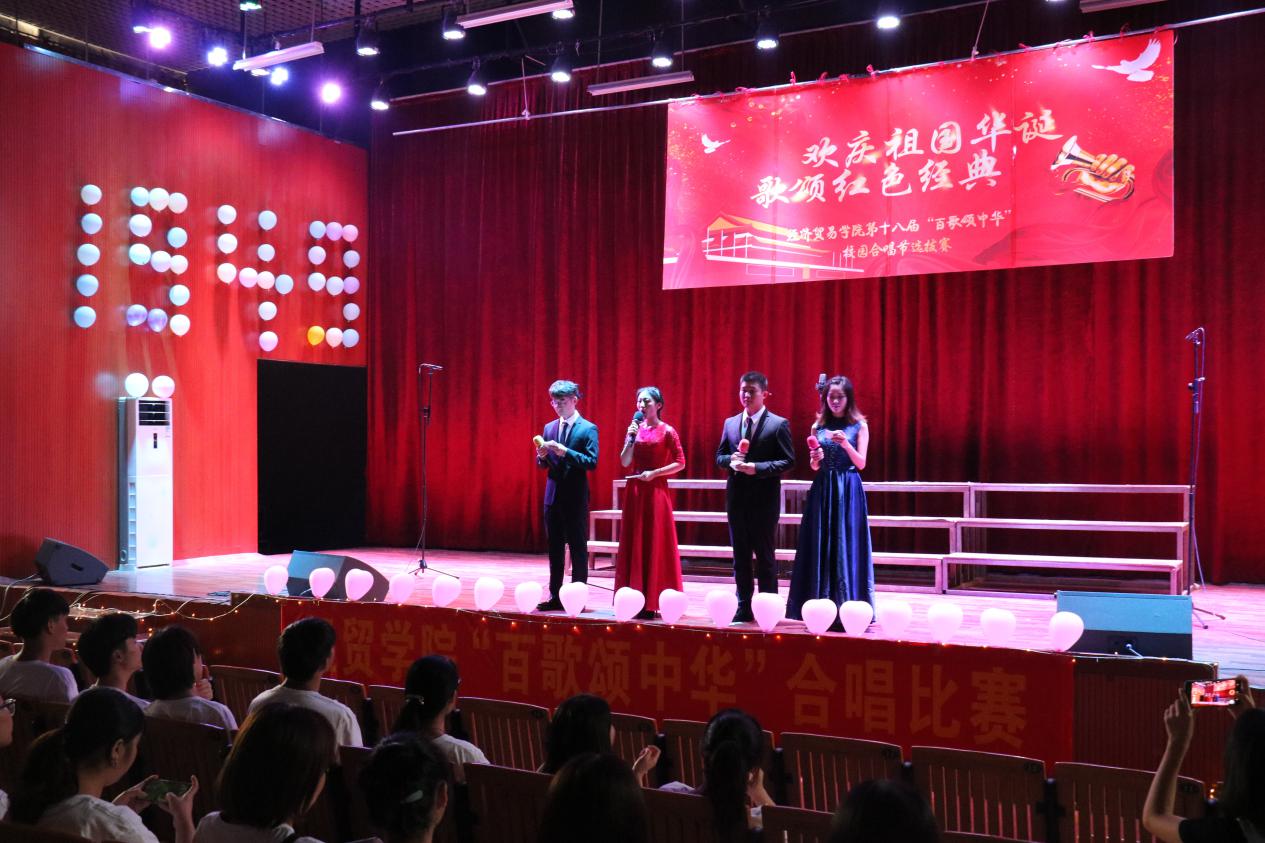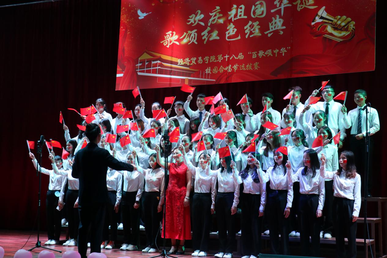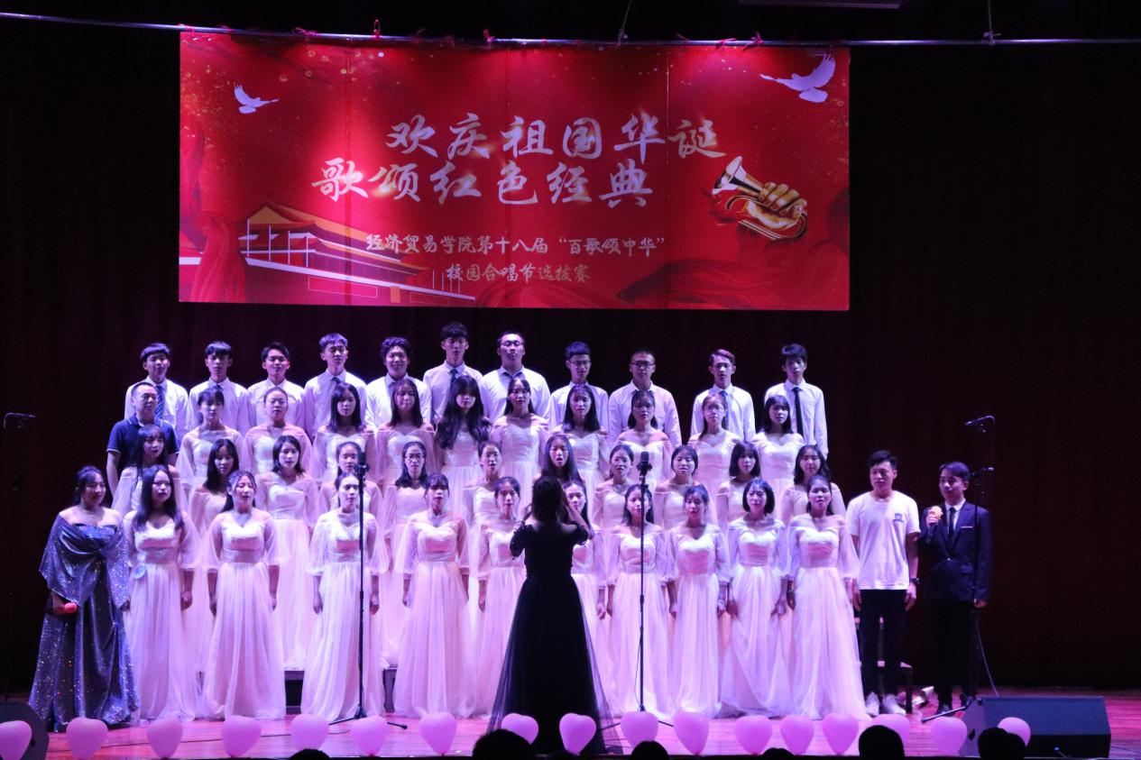 为庆祝新中国成立70周年,进一步加强我学院团组织和共青团员的建设,展现工贸学子的风采。2019年10月15日下午,由经济贸易学院党总支主办的第十八届“欢庆祖国华诞,歌颂红色经典”的百歌颂中华合唱比赛在白云校区演艺厅隆重举行。