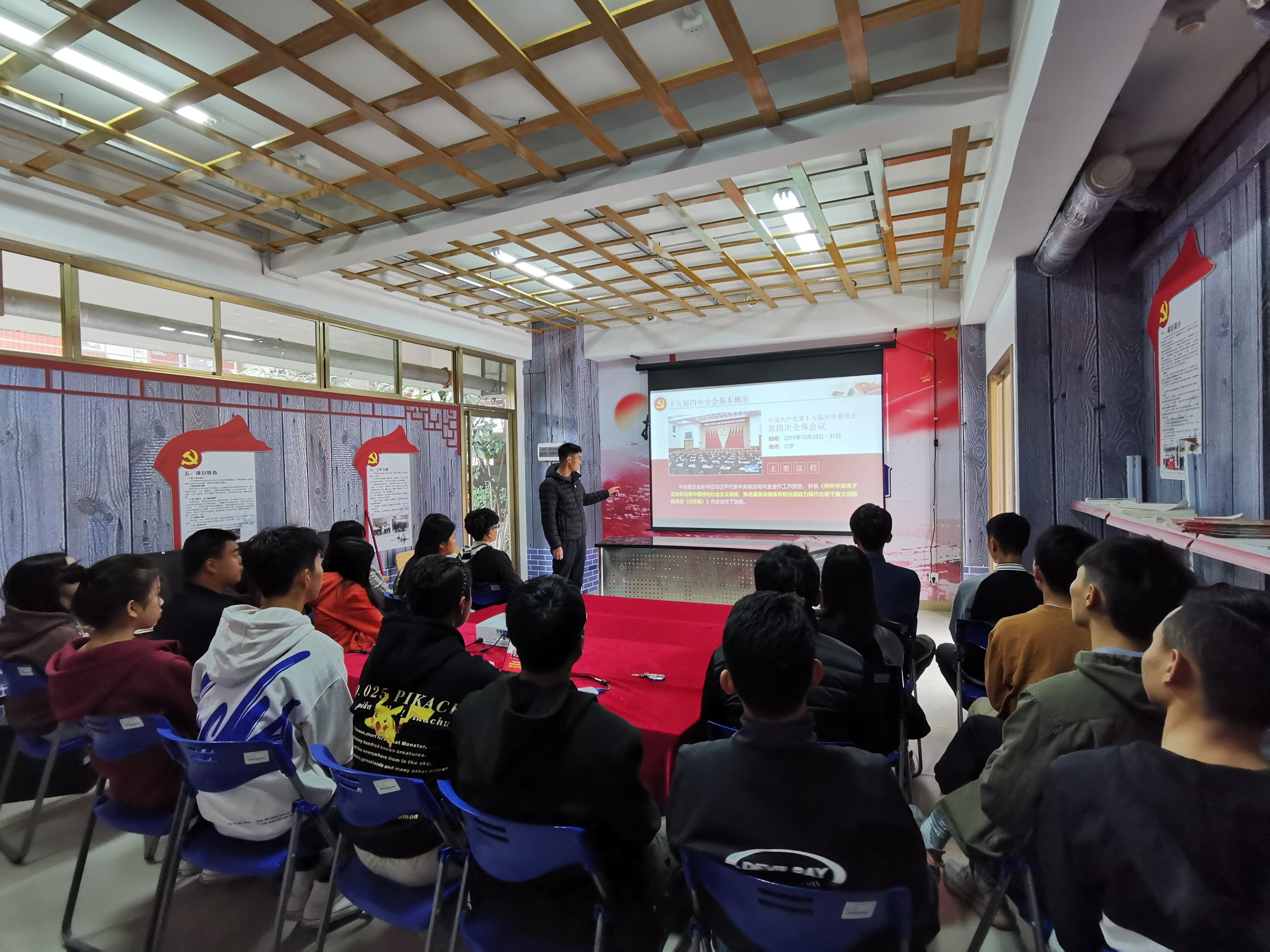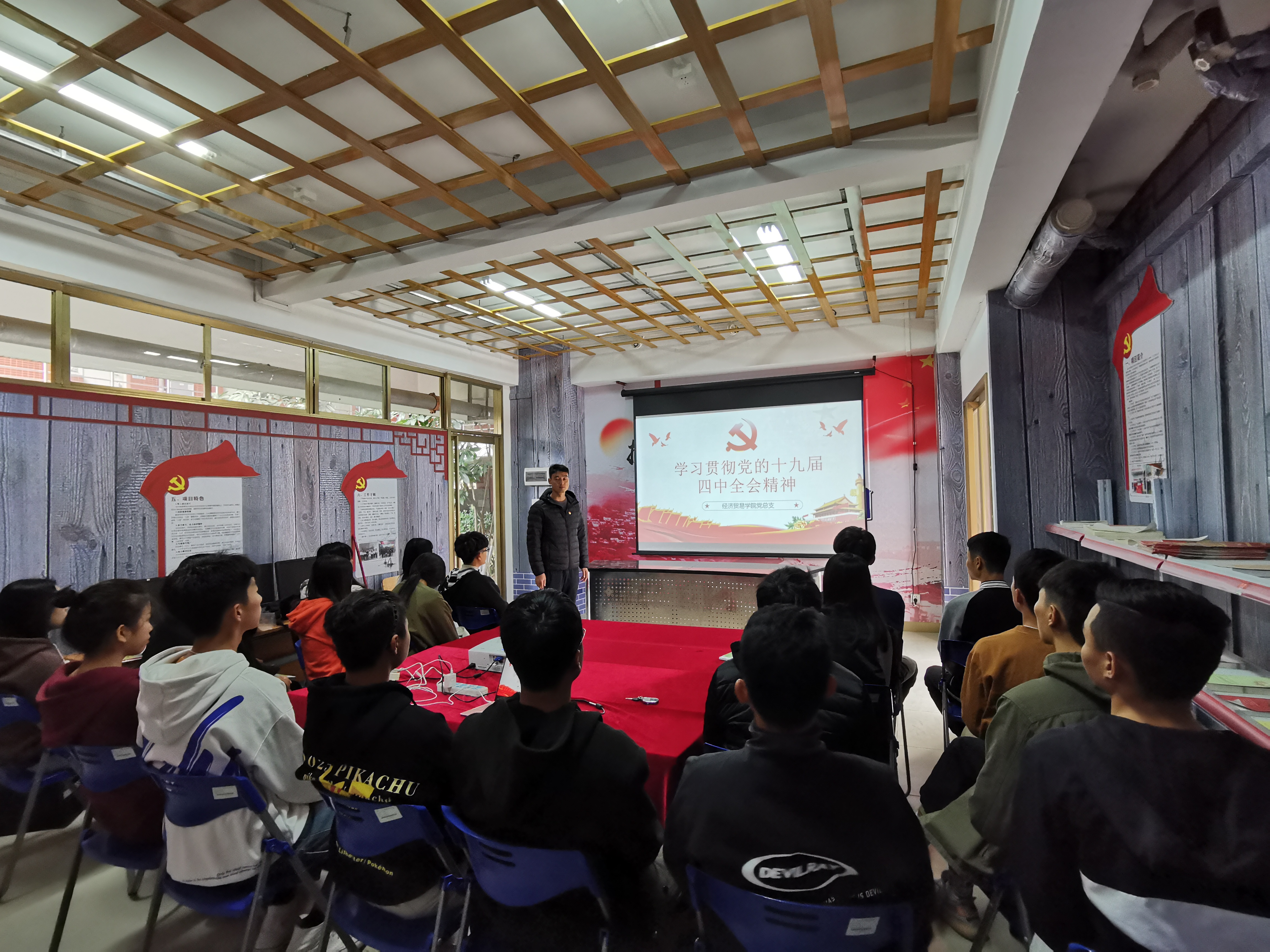 2019年12月5日上午,经济贸易学院党总支副书记龚云、学生第一党支部书记吴海英在“红色之旅”讲习所开展专题教育党课,组织贯彻学习党的十九届四中全会精神,19营销1班所有入党申请人参加了本次学习。