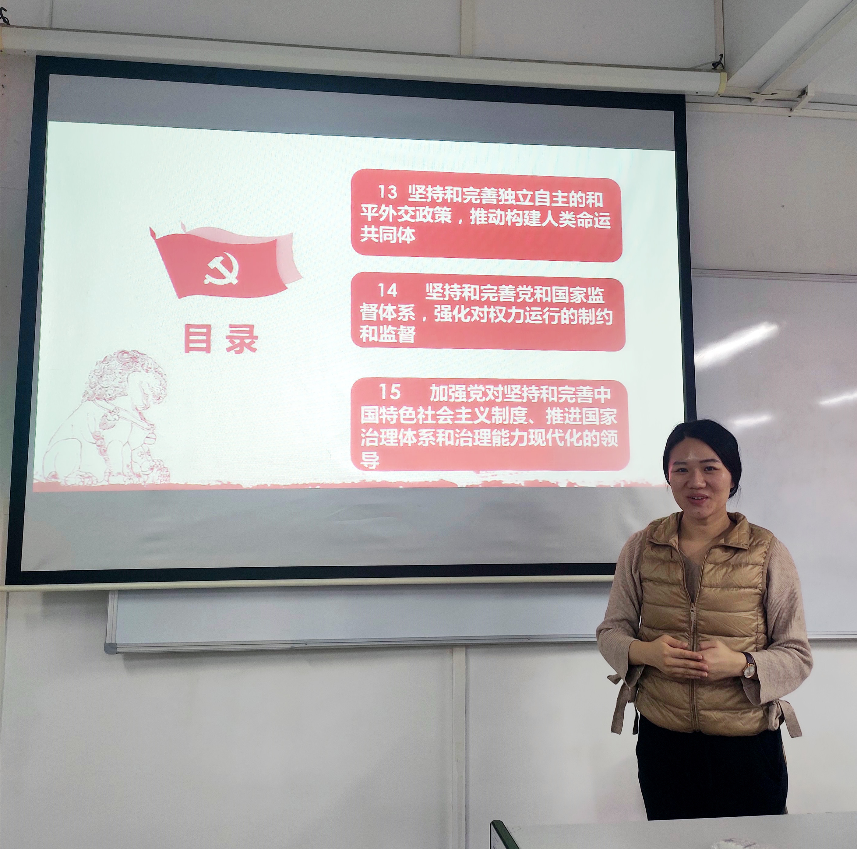 支部书记蒋晶同志组织支部成员,通过查找网络资料、集中研讨等方式加强学习。参加本次学习的党员纷纷表示,作为党员教师,我们要切实增强政治自觉,贯彻落实学习党的十九届四中全会精神,坚定信心,保持定力,锐意进取,开拓创新,积极参与并做好专业课的课程思政,把握正确的政治站位,以正确的国家观、世界观、价值观和坚定的教育信念,培养社会主义建设人才。
