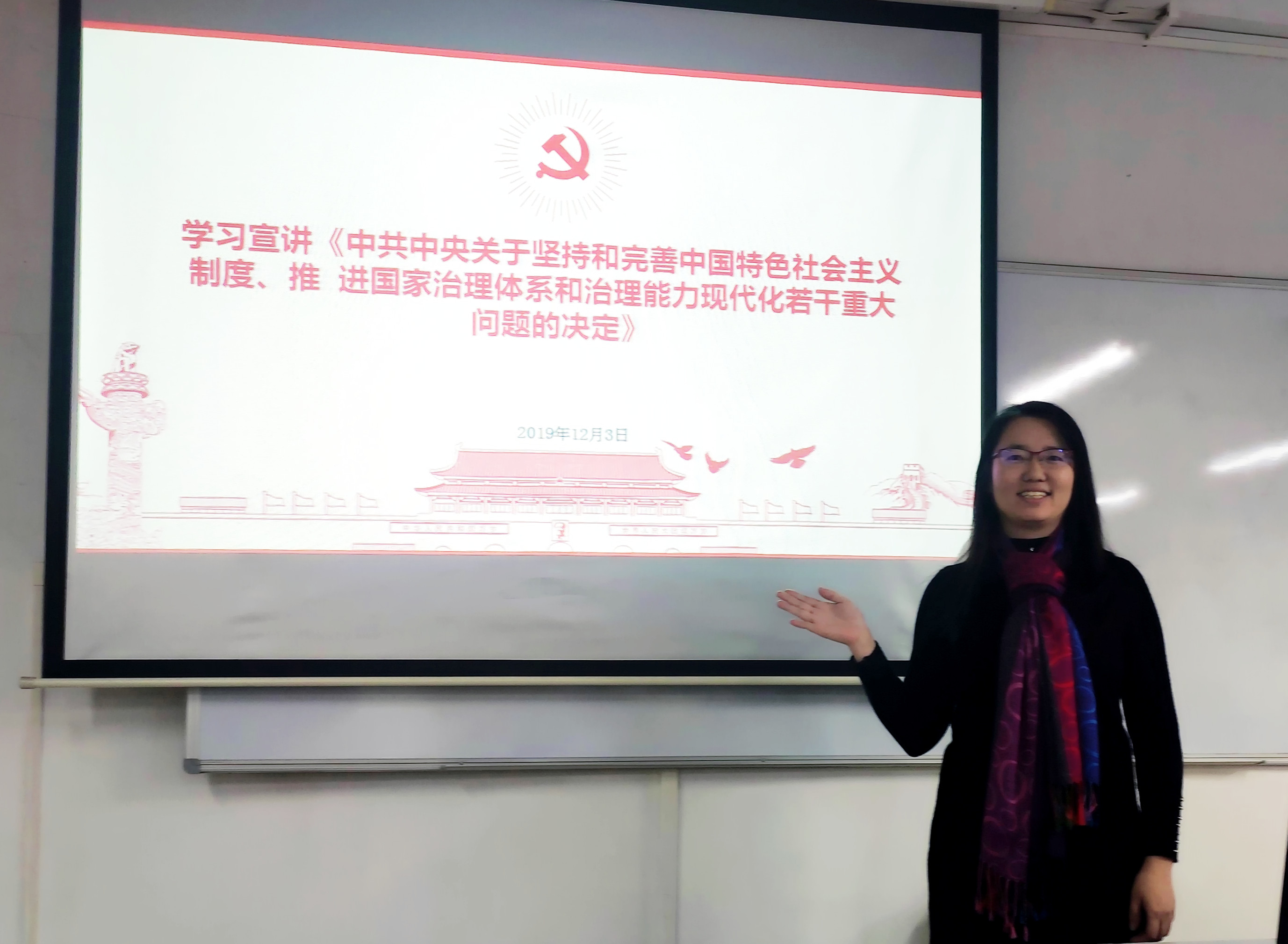 2019年12月3日下午,经贸学院教师第二党支部在天河校区共同学习并探讨了党的十九届四中全会精神。支部书记蒋晶,支部成员徐萌、张莉、刘佳珺、李文婷同志参加了本次学习。