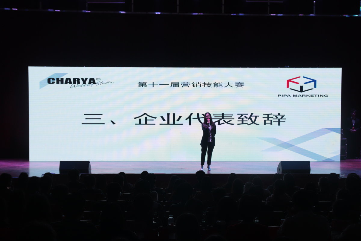 主持人开场后,经济贸易学院市场营销专业带头人彭娟教授上台为本次闭幕式致辞,她阐述了品派营销协会举办营销技能大赛的发展史,感谢到场的参赛队伍和观众以及肯定品派营销协会的实力并相信在今后大赛会越办越好。