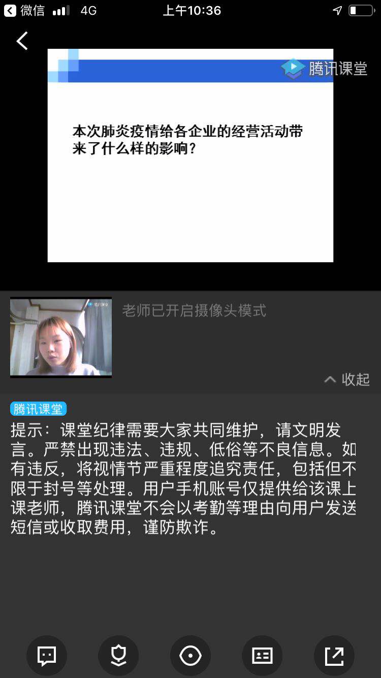 春意盎然,春暖花开,新学期的第一周就在这充满万物复苏的春天中拉开了帷幕。随着线上教学的不断开展,经贸学院的老师和同学们都逐渐步入正轨,纷纷适应了这种特殊的教学和学习模式。在教学模式创新的同时,经贸学院的老师们在教学内容上还呈现出了新的亮点:老师们都不约而同地结合当前疫情背景来讲解专业知识,案例贴切,丰富生动.