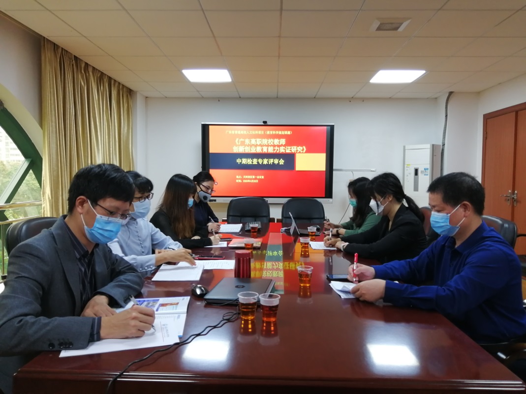 广东省教育科学规划课题“广东省高职院校教师创新创业教育能力实证研究”项目中期检查分为两个阶段,第一阶段是4月20-21日校内外专家吴冬才、李义丰、詹泽慧、何军拥四位教授通过网上审阅中期检查资料,包括开题报告、中期检查报告书、中期研究报告、成果佐证材料、资金使用情况等;第二阶段是4月22日校内外专家以及项目组在我校天河校区西区第一会议室召开现场评审会议。