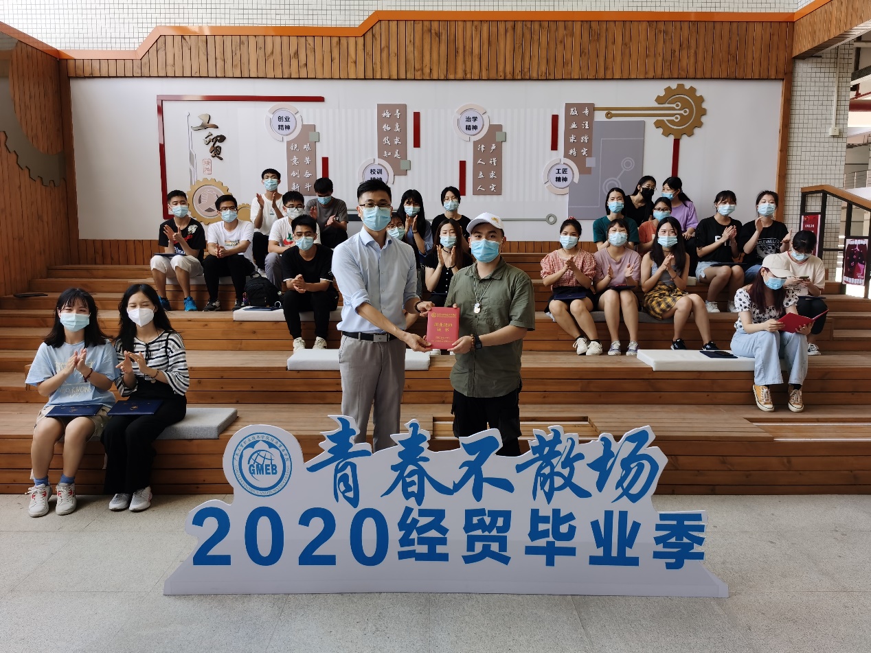 口罩挡不住一声声问候!一句句感恩!眼神掩饰不住师生见面的激动和喜悦!上午10时,一场特别的经贸学院2020届毕业典礼在“明德思政体验基地文化交流厅”举行。经贸学院党总支书记李繁、院长邱秀芳、副书记龚云、行政办主任邓彩云、学工办主任黄小奇、全体辅导员、以及全体毕业班班主任出席了毕业活动,为同学们颁发毕业证书和“优秀毕业生”、“工贸技师”荣誉证书,并为同学们送上祝福和期望!