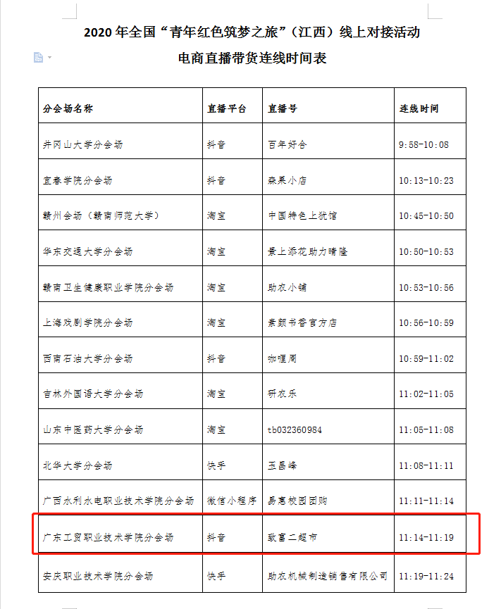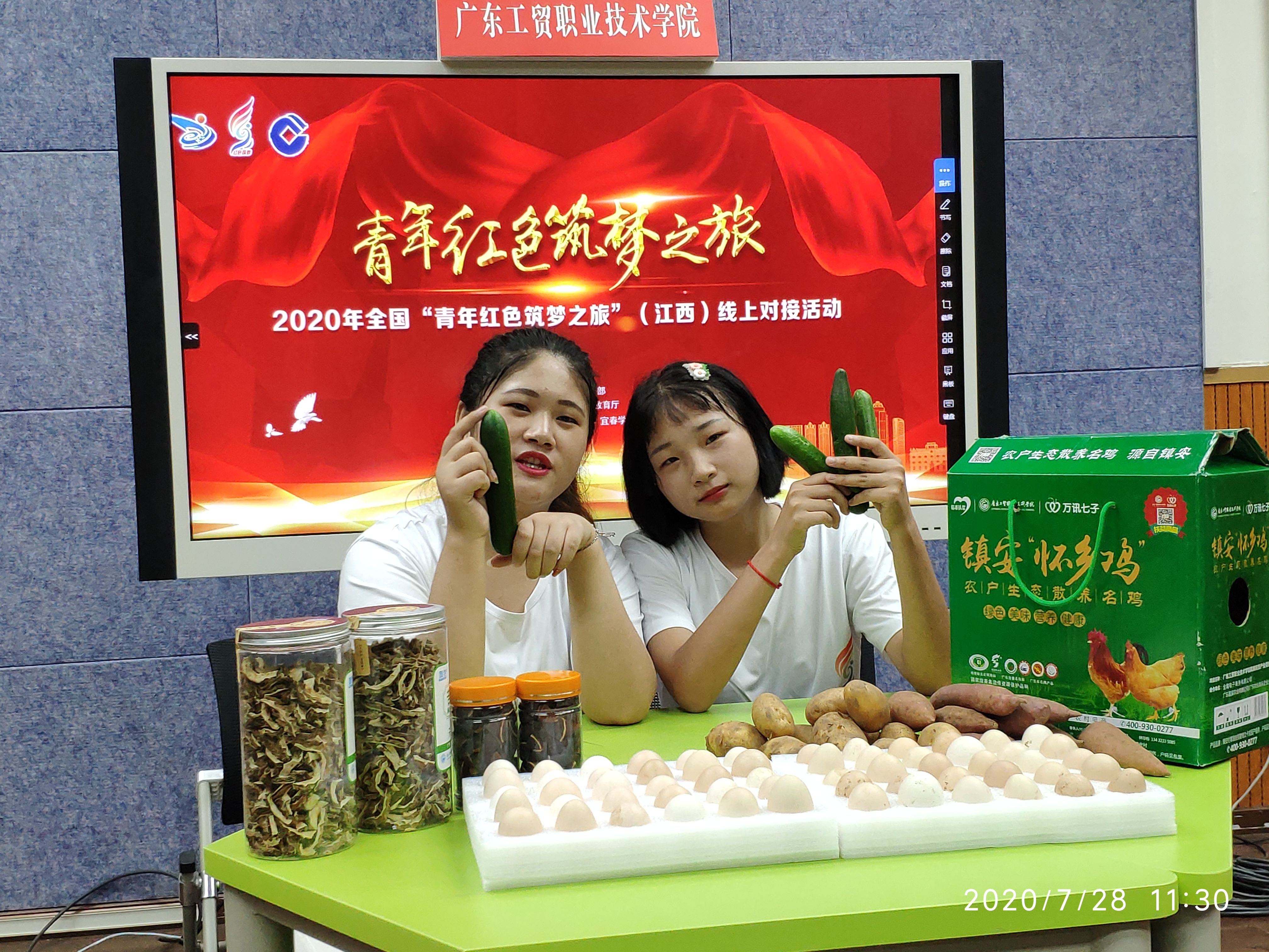 7月28日,第六届中国国际“互联网+”大学生创新创业大赛全国“青年红色筑梦之旅”江西线上对接活动成功举行。活动由教育部主办,江西省教育厅承办,南昌大学、井冈山大学、宜春学院、萍乡学院协办。我校“致富二超市项目”作为广东省教育厅的十个代表项目之一参加了本次活动,同时,我校被指定为本次活动中“红旅”扶贫产品电商直播连线广东省唯一分会场。