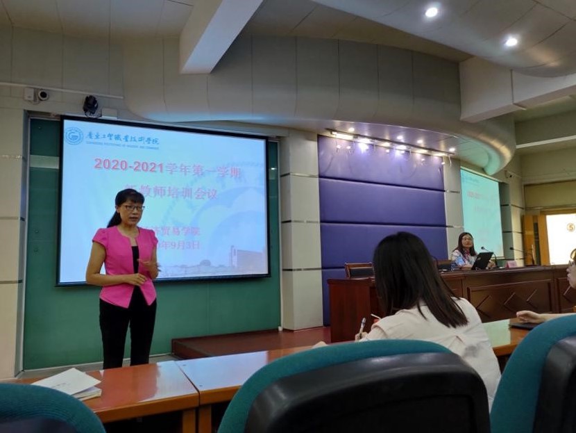 2020年9月3日上午,经济贸易学院于天河校区西区报告厅开展新教师培训会议,经贸学院院长邱秀芳、副书记龚云、副院长方洁、办公室主任邓彩云、学工办主任黄小奇、教务员及新教师参加了本次培训。会议由邓主任主持,培训内容包括了教务系统、教学、考务、竞赛、OA系统、财务报账、资产报增等。