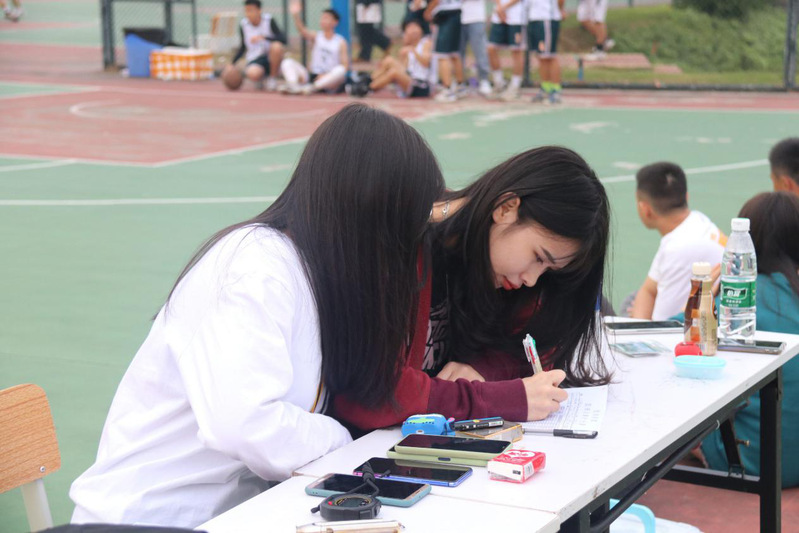 各班参赛队员们很快就进入了比赛状态。以熟练的篮球技巧充分发扬了顽强拼搏的精神,在比赛中你争我抢,同时与队友默契配合,用心组织进攻。一个队伍里总有能力强的和力有未逮的,但赛场上每一个队员都以饱满的热情参与。在赛场外,各班观赛人员也毫不松懈,他们奋力为自己班的队员们呐喊助威,热烈的欢呼声此起彼伏,感染着场上的每一个人。