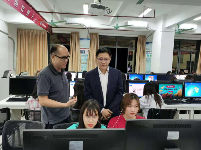 在实训期间,学校副校长刘贻新来到学生实训现场开展指导工作,学院院长邱秀芳教授和电子商务专业教师李波老师等陪同。
