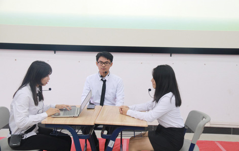 特邀嘉宾表演结束后,比赛继续进行。第二环节,参赛选手们通过情景模拟等表演形式向观众们展现了不同的职场情景对话与不同职位、身份的职能,努力体现不同职场中各专业职场人员所应具备的高职业素养。