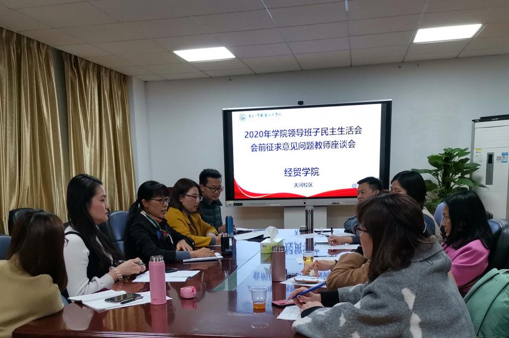 根据党章和党内有关规定以及学校《关于印发<中共15vip太阳集团委员会关于认真开好2020年度党员领导干部民主生活会的实施方案>的通知》要求,为开好经贸学院2020年度民主生活会,汇聚基层力量,推动学院“十四五”时期开好局、起好步,1月7-8日,学院领导班子李繁、邱秀芳、龚云、蒋晶分别主持召开了民主生活会会前征求意见师生专题座谈会,全体学院教师以及部分学生代表参与了座谈。