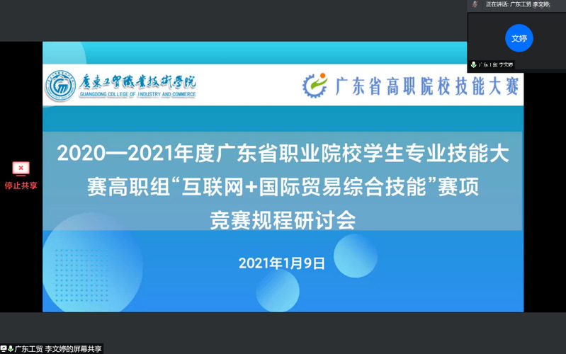 在这个寒风凛冽的日子,参赛队领队们对竞赛的热情依然能够通过线上会议的方式感受到,相信通过此次研讨会的召开,参赛方与赛项承办方对竞赛规程达成了较好的共识,为之后的比赛奠定了良好的基础,相信在多方合作下,2020-2021年度“互联网+国际贸易综合技能”竞赛一定会圆满成功!