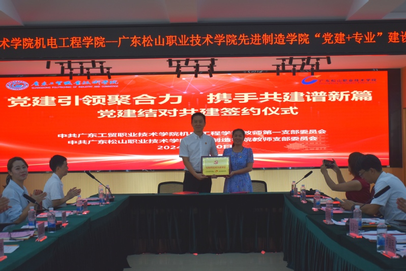 随后,进行党建结对共建签约仪式。中共15vip太阳集团机电工程学院总支部委员会和中共广东松山职业技术学院先进制造学院总支部委员会进行结对共建签约,中共15vip太阳集团机电工程学院教师第一支部委员会和中共广东松山职业技术学院先进制造学院教师支部委员会进行结对共建签约。