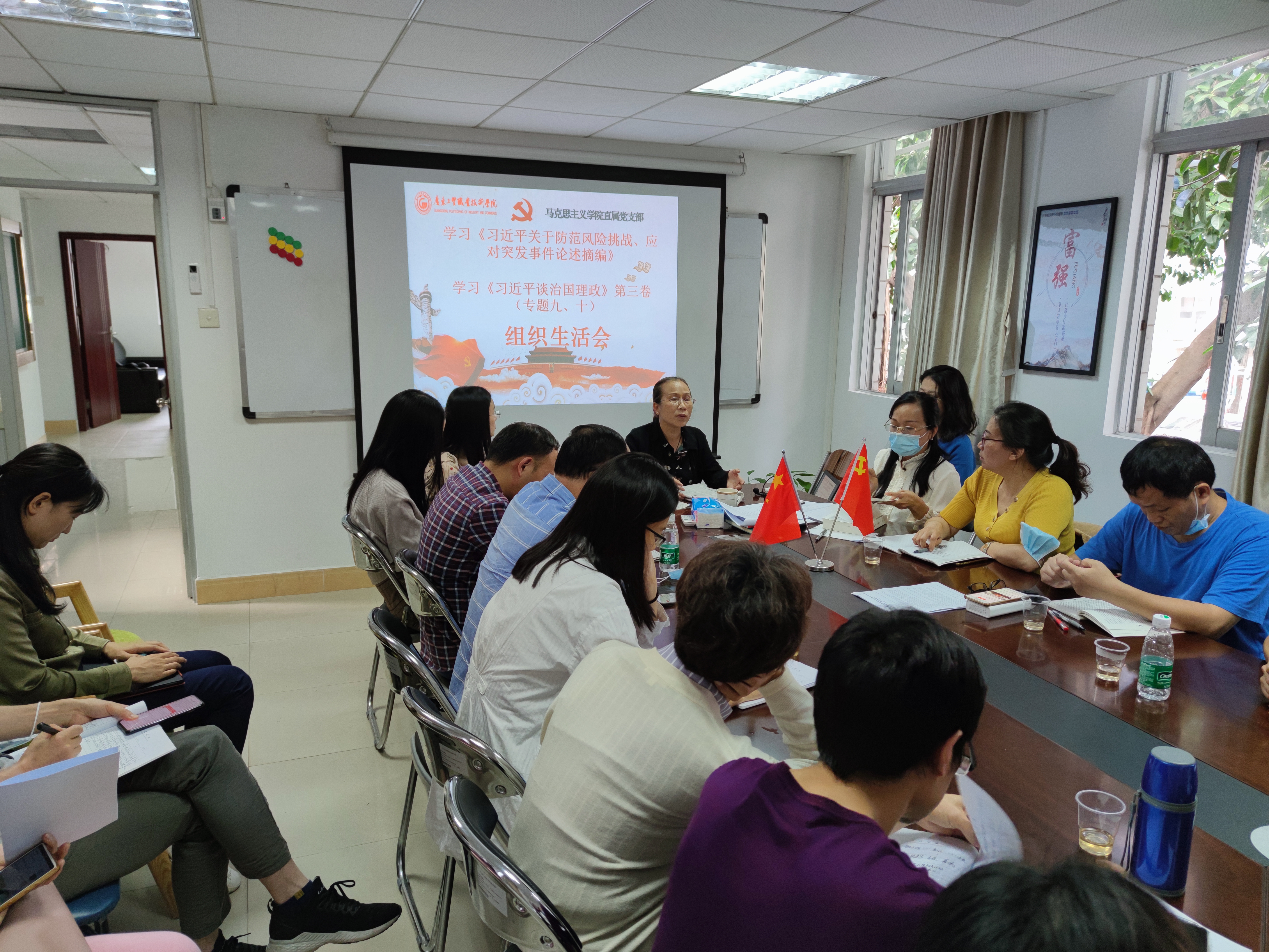 为贯彻落实教育部、省教育厅关于深入学习《习近平谈治国理政》第三卷和《习近平关于防范风险挑战、应对突发事件论述摘编》等文件要求,根据学校党委的工作安排,马克思主义学院直属党支部于11月3日下午召开组织生活会,全体党员教师参加了政治理论学习并集体观看《全面从严治党警示教育片》。会议由党支部书记李瑞清主持。