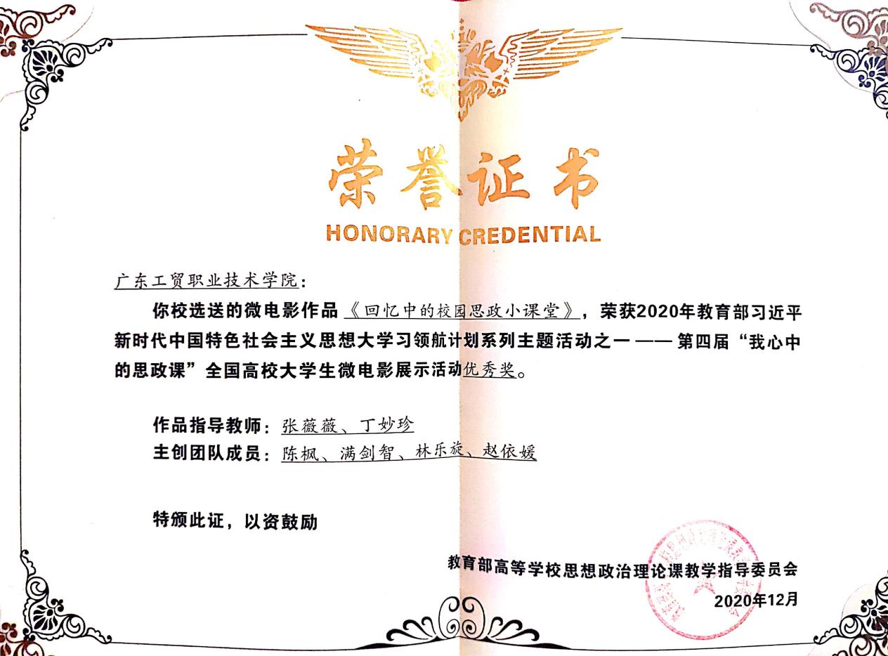 由教育部高等学校思想政治理论课教学指导委员会组织的2020年教育部习近平新时代中国特色社会主义思想大学习引领计划系列主题活动落下帷幕,我校马克思主义学院教师指导的微电影作品《回忆中的校园思政小课堂》荣获第四届”我心中的思政课“全国高校大学生微电影展示活动优秀奖一项。
