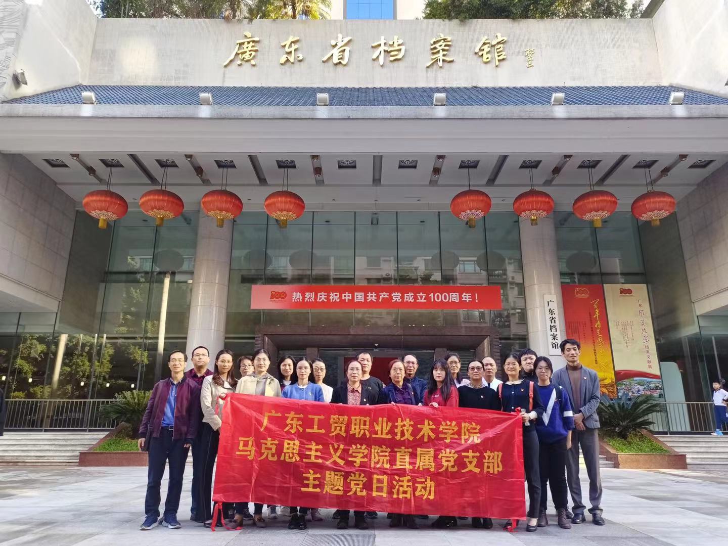 为扎实推进党史学习教育、持续学习贯彻习近平总书记“七一”重要讲话精神,教育和引导广大师生了解党的光辉历史和光荣伟绩,读懂百年大党的胜利密码,感受烈火淬金的精神锋芒,根据省委教育工委工作部署和学校党委要求,马克思主义学院直属党支部于11月9日下午组织党员教师和学生赴广东省档案馆参观“百年恰是风华正茂”主题档案文献展活动。