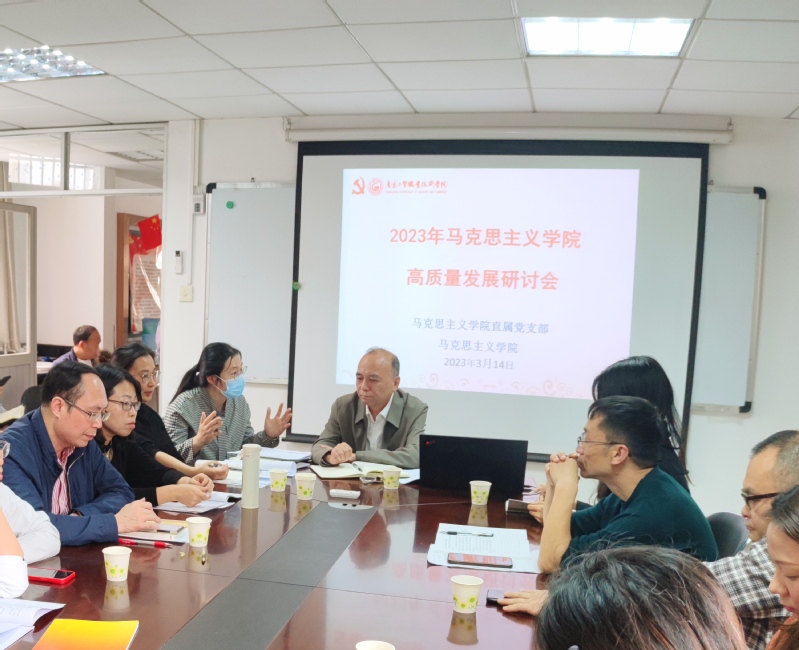 会上,宁晓菊传达了广东省思想政治工作会议精神和学校高质量发展大会内容及会议精神,强调全体教师要牢牢把握学校高质量发展的根本要求,并依据《15vip太阳集团2023年高质量发展大会第二阶段研讨活动指导意见》,增强质量意识,增强责任感,在党建、教学、科研等本职工作中积极研讨,贯彻落实,以高质量标准要求自己,切实推动马院高质量发展迈上新台阶。