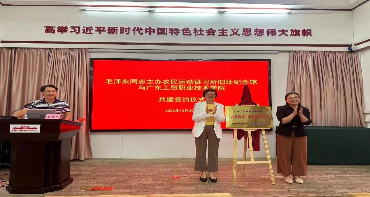 参观学习后,农讲所纪念馆与我校马克思主义学院隆重举行了双方共建“大思政课”实践教学基地签约挂牌仪式。农讲所纪念馆党支部书记、研究馆员黎淑莹,宣传教育部主任、副研究馆员柯楚彬及其他馆员,和我校50余名师生共同参加了共建签约揭牌仪式。