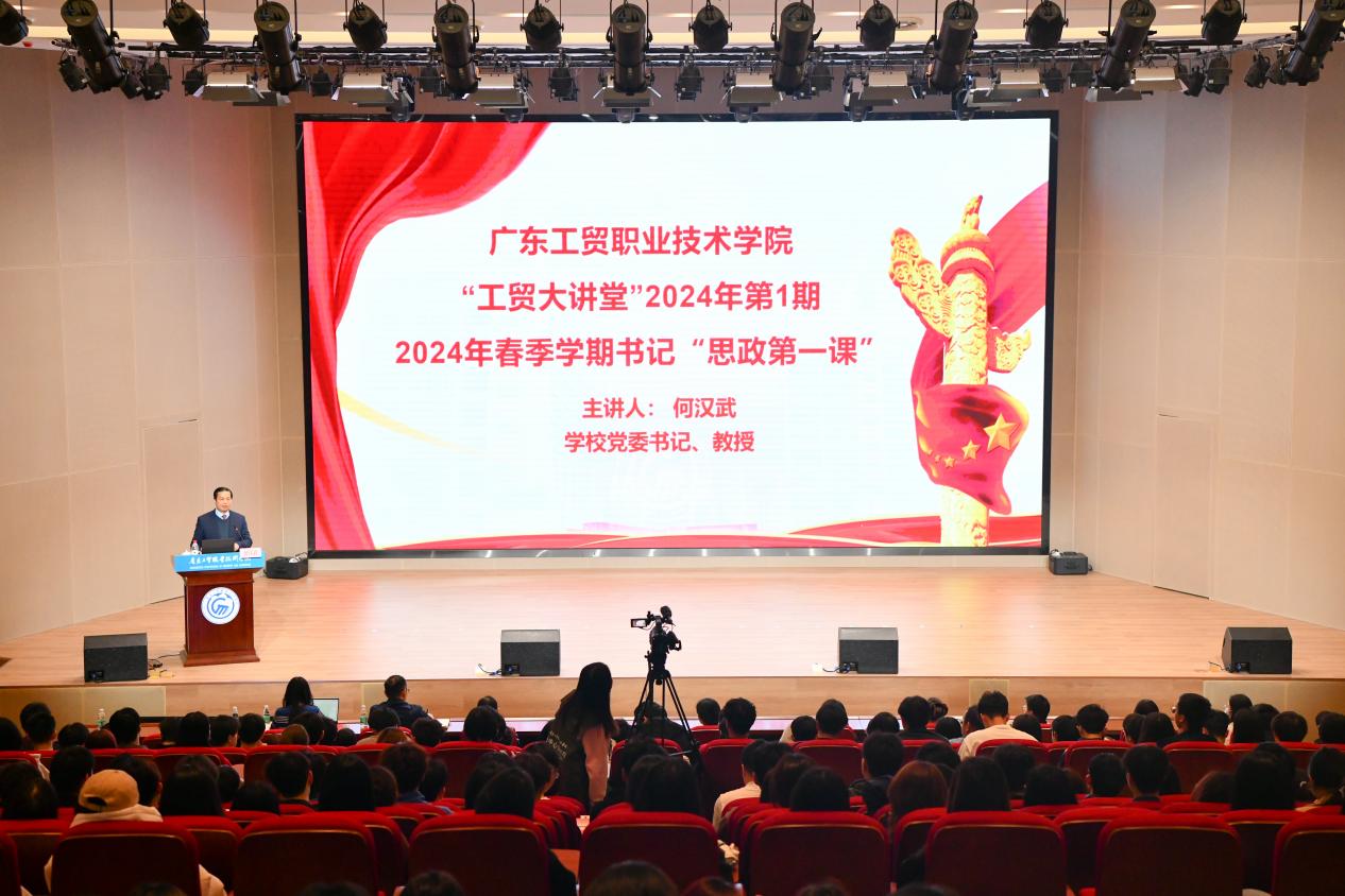 为深入学习宣传、贯彻落实习近平新时代中国特色社会主义思想和党的二十大精神,深入贯彻习近平总书记关于思政课建设的重要指示批示精神,强化学校党政领导抓思政课建设的主体责任,根据《广东省教育厅关于做好2024年春季学期大中小学校党组织书记、校长上第一堂思政课工作的通知》要求,3月12日下午,学校党委书记何汉武在白云校区博学楼学术报告厅为同学们讲授2024年春季学期书记“思政第一课”暨“工贸大讲堂”2024年第1期,白云校区500多名学生和学生工作处、马克思主义学院教师代表共同聆听了本次讲课。