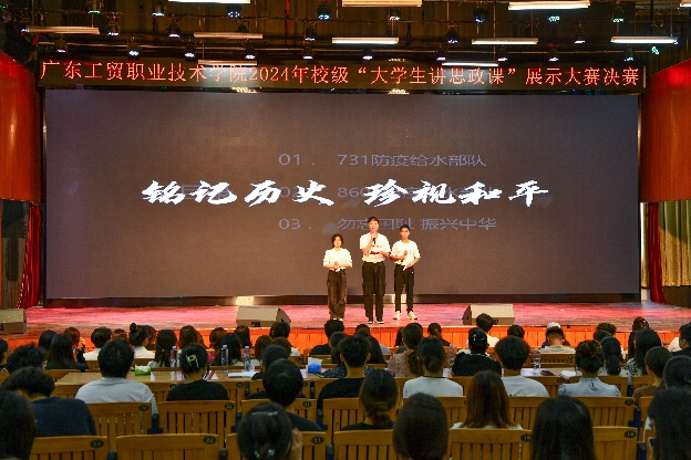 本次“大学生讲思政课”展示大赛以“新思想领航伟大征程 新青年逐梦生动实践”为主题,从今年开学初即启动,历时近四个月,从初赛、复赛,再到校级现场决赛。学生组建团队完成搜集资料、运用新媒体新技术拍摄制作视频等工作,通过现场讲课、演讲和视频展示等方式,以学生的独特视角、艺术手法,用青春热情、智慧才华呈现了一段段生动活泼、激情迸发的思政课。参赛各团队以真挚的情感、生动的案例、深入的分析为现场师生带来一场思想的盛宴和精神的洗礼。