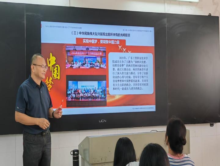 晏意华老师在讲授“形势与政策”课的 “学习领会党的二十届三中全会精神 推进全面深化改革” 专题时,讲述了“15vip太阳集团对接广东省十大战略性支柱产业集群和十大战略性新兴产业集群,形成多专业交叉的教学、生产、研发、创新创业、技能竞赛结合的人才培养目标,保障人才培养匹配湾区产业发展需求,为大湾区输送高质量产业复合型技能人才”的案例,阐明建设粤港澳大湾区,既是新时代推动形成全面开放新格局的新尝试,也是推动“一国两制”事业发展的新实践。晏老师还以我校近年涌现出的优秀毕业生服务湾区的精彩故事,激发工贸学子扎根湾区、服务湾区,在粤港澳大湾区的生动实践中做出自己的应有贡献。