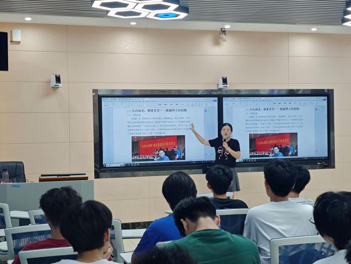贾云飞老师在给2024级新生讲“思想道德与法治”课程第一章第一节“人生价值”的内涵时,用到了“名师楷模:伍炜勤”的事例;赵聪老师在给2023级学生讲授“习近平新时代中国特色社会主义思想概论”课程第二章第三节“推进中国式现代化行稳致远”的过程中,也融入了援疆博士伍炜勤老师的故事。贾老师通过伍炜勤援疆的事例让同学们理解个人价值与社会价值的关系,把人生价值的实现与服务社会相结合,在同学们当中收到良好效果。赵老师重点讲述了伍博士积极协调广东省商务厅援疆资源,为新疆提供招商引资、电子商务及口岸通关等培训服务,协调浙江省援疆资源,在每年援疆项目中安排一定资金用于新疆电商人才培训等,用他的专业学识与实际行动助力新疆现代化建设。其他思政课教师也纷纷从基地育人、国际交流、振兴乡村等各方面,多角度、全方位将湾区故事、工贸故事有机融入思政课堂,让思政课更鲜活、更接地气。