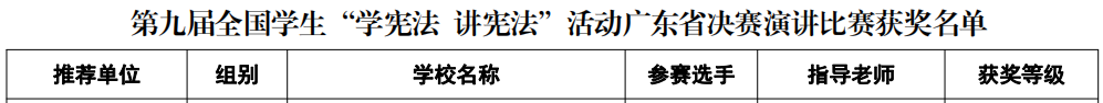 近日,由广东省教育厅主办的第九届全国学生“学宪法 讲宪法”活动广东省决赛在广东外语外贸大学圆满落幕。我校学生在本次比赛中表现优异,23级工业设计专业5班张佳茹同学在马克思主义学院贾云飞老师的指导下荣获演讲比赛三等奖,23级汽车技术服务与营销专业4班郑曼如同学在马克思主义学院文菲斐老师的指导下同样获得三等奖。