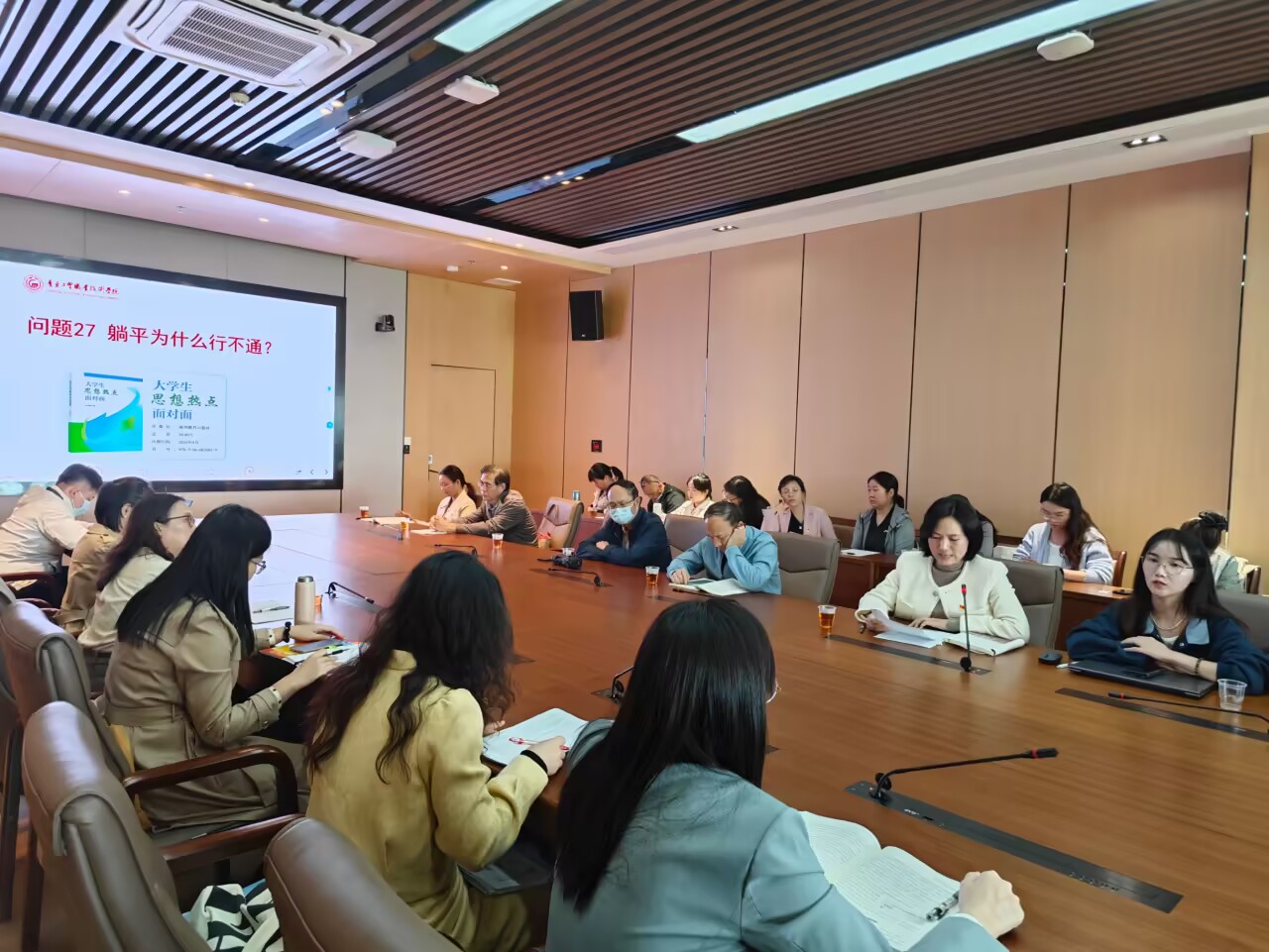 在《大学生思想热点面对面》交流研讨环节,李爽老师分享了关于“躺平为什么行不通?”的教学设计。她建议可以通过引用网文《躺平即正义》引发学生们的讨论,进而引导学生通过历史、现实和未来的多方面认识到躺平不能解决问题,反而会积累问题。她强调,学生应该认识到只有通过不懈的努力,才能实现个人价值和社会进步。梁钰玥老师围绕“如何摆脱精神内耗?”进行了教学设计的分享。她通过情境引入,让学生理解精神内耗的定义和表现,分析其产生的原因,并提供具体的解决方法。建议通过视频和案例,帮助学生认识到精神内耗的危害,引导他们采取积极的应对策略,学会管理自己的情绪,避免过度思考和拖延,培养积极的心态和行动力。赵芳老师分享了关于“大学生应该追什么样的星?”的教学设计。通过拿破仑的案例,引发学生思考什么样的人是伟大的,以及如何评判历史人物的伟大成就。她引导学生认识到,真正的英雄和伟人是那些顺应历史发展潮流、推动人类进步的人。大学生应具备独立思考能力和批判精神,学会从多角度分析历史事件和人物,培养全面的历史观和价值观。刘凤梅院长在小结中指出《大学生思想热点面对面》是思政课教育教学的延伸和“大思政课”的有机组成部分。全体教师应以此次研讨会为契机,增强问题意识,坚持问题导向,结合学生专业更好地将该书与思政课的教学内容进行紧密结合。