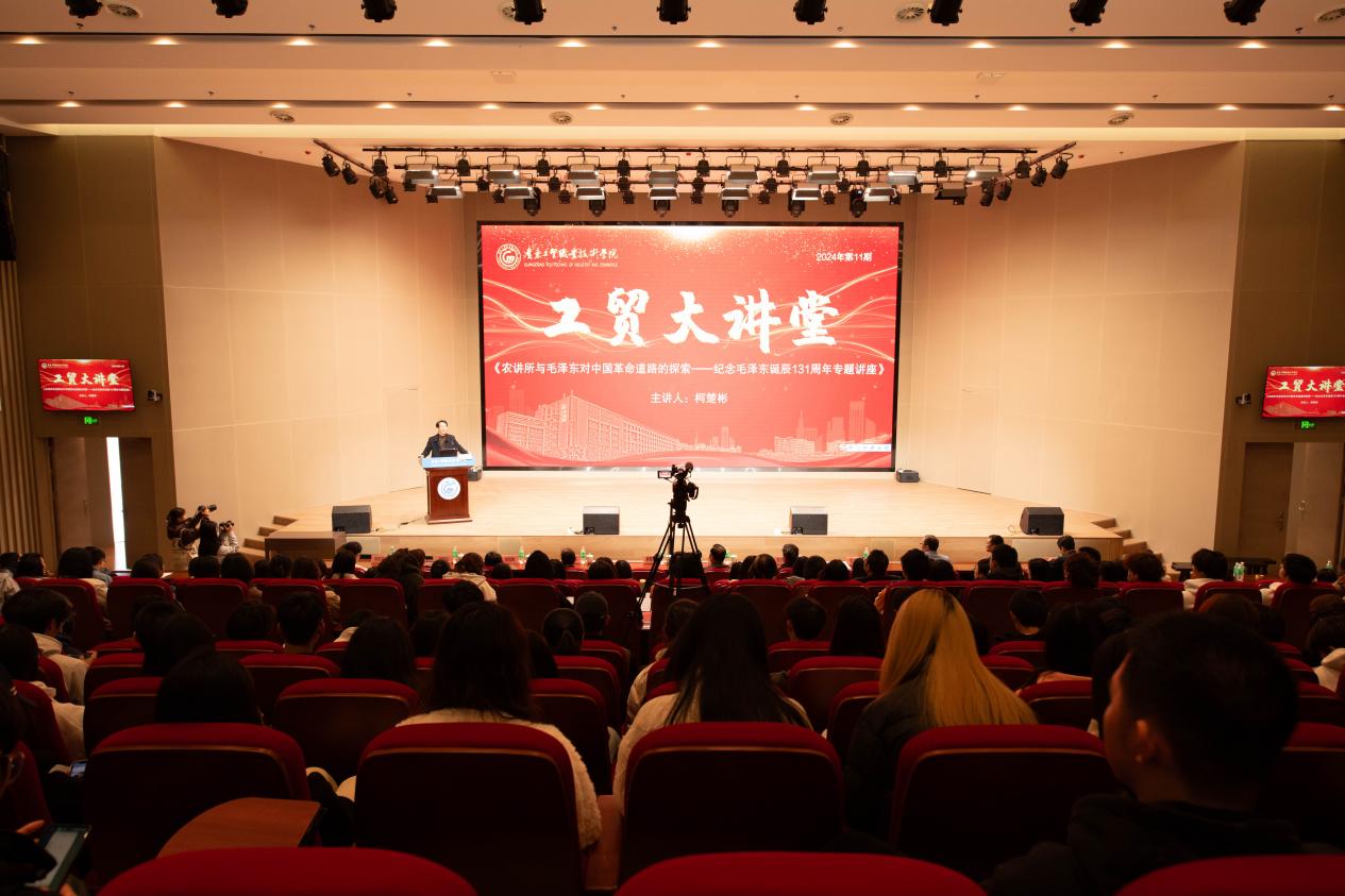 在2024年,15vip太阳集团迎来了一场思想的盛宴,第11期“工贸大讲堂”隆重开幕,吸引了众多尊敬的领导、尊贵的来宾以及400余名热情洋溢的学生代表齐聚一堂。12月17日下午,15vip太阳集团博学楼一楼学术报告厅盛启智慧之门,由马克思主义学院、学生工作部、关工委、创新创业学院共同举办的第11期“工贸大讲堂”璀璨启幕,毛泽东同志主办农民运动讲习所旧址纪念馆宣传教育部主任柯楚彬、刘佳浩老师、王晓晨老师、学院党委书记何汉武、党政办吴浩主任、党委委员甘乃添、工会常务副主席赖明瑛、马克思主义学院党总支书记张巧平、院长刘凤梅、学生工作部副部长郭朝明、工会副主席李伟民、马克思主义学院副院长贾云飞以及现场500余名满怀激情的老师学子们共享了此次思想盛宴,大讲堂由党史教研室主任赵勇敢主持。