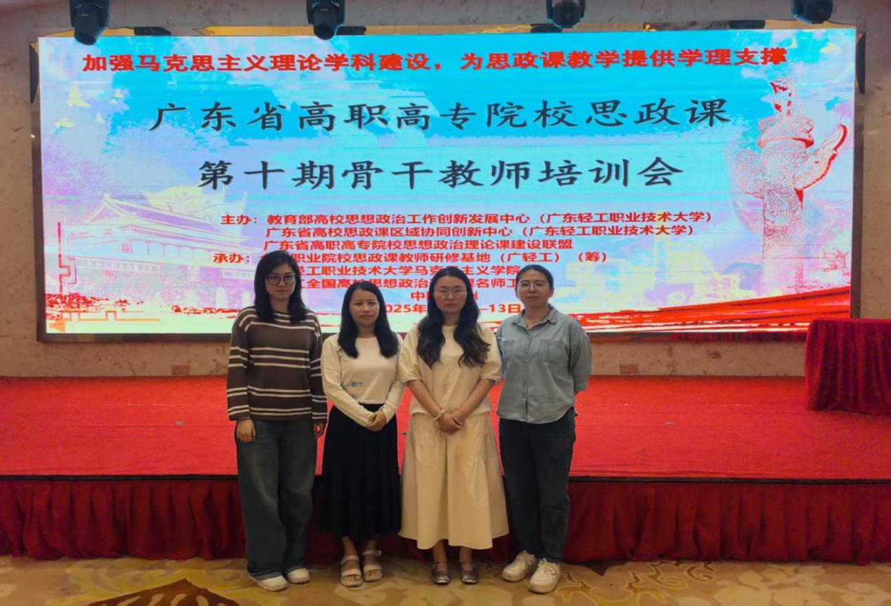 2025年4月11-13日,教育部高等学校思想政治工作创新发展中心(广轻工)、广东省高校思政课区域协同创新中心(广轻工)、广东省高职高专思想政治理论建设联盟在广州南洋长胜酒店会议厅举办第十届高职高专院校思政课骨干教师培训会。我校马克思主义学院教师黄李琳、杨婕、张倩、许新参加培训。