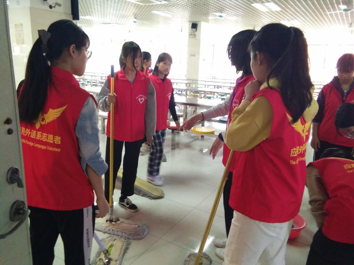 青春义扫,协众一清 ——记应用外语学院青协分会义扫饭堂活动