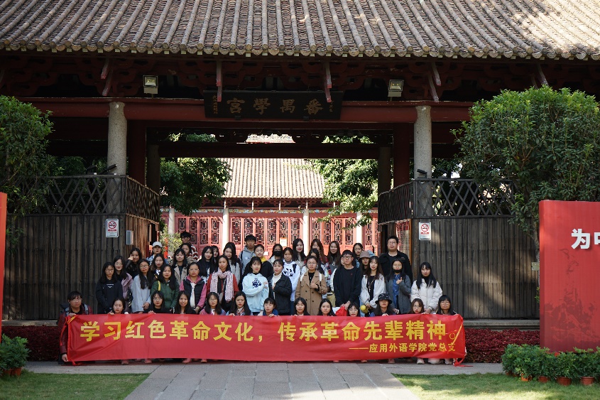 12月8日,为弘扬习近平新时代中国特色社会主义思想,进一步激发学生党员及入党积极分子的爱国热情,应用外语学院党总支组织全体在校党员与部分积极分子参观中共三大会址遗址纪念馆、永庆坊、农讲所旧址等广州有名的三处红色革命教育基地,实地学习红色革命文化,传承革命先辈精神。该活动由党群服务中心副委员长黄烁杭和沈冰环带队。
